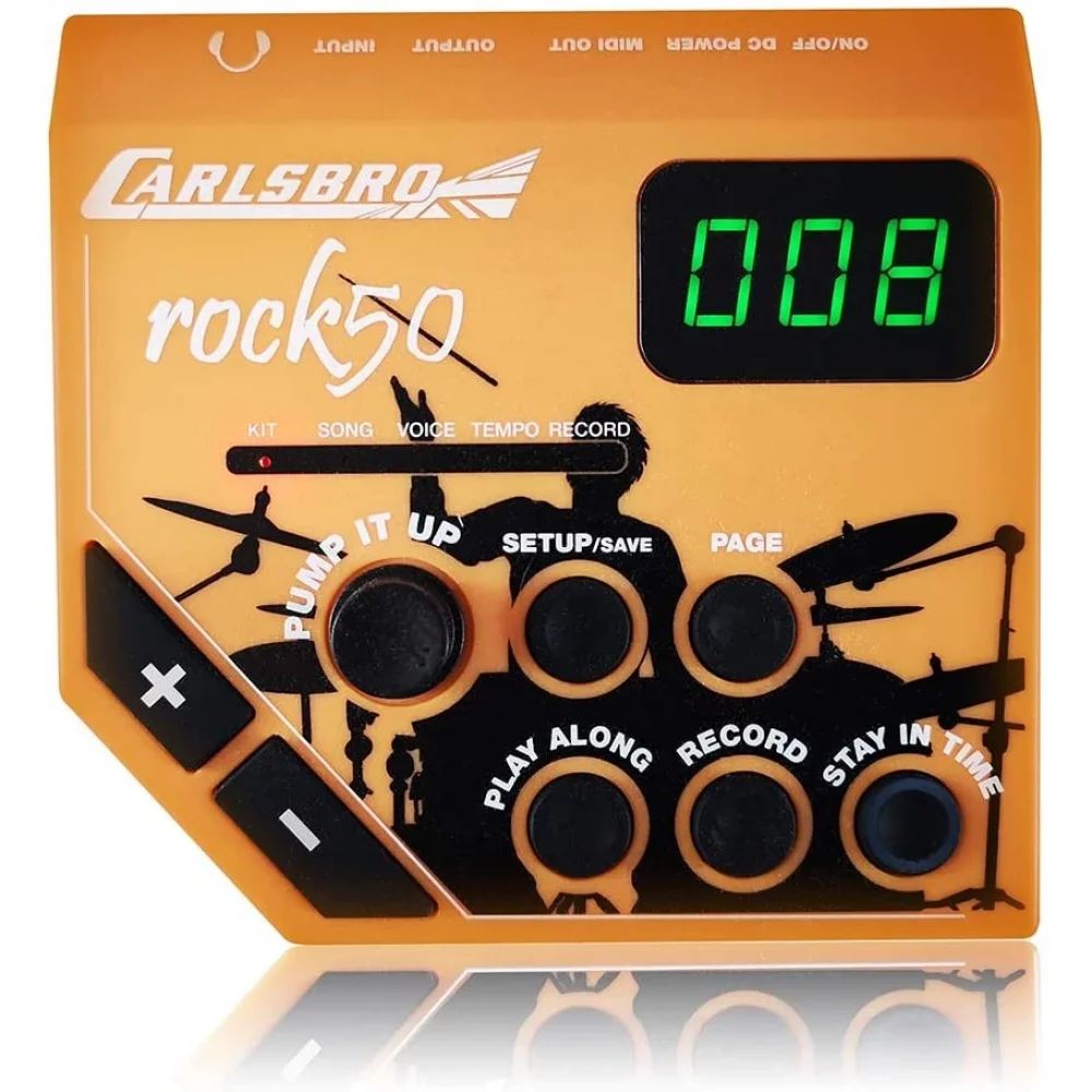 Rock50 Modülü, kendi kişiselleştirilmiş sesinizi keşfetmenize ve yaratmanıza olanak tanıyan 108 farklı davul sesi, 10 önceden ayarlanmış davul kiti ve 2 kullanıcı tanımlı davul kiti içerir. Modül ayrıca 10 Demo şarkı, bir kayıt ve oynatma işlevi, bir aux giriş soketine sahiptir, böylece en sevdiğiniz şarkılarla birlikte çalabilirsiniz. Ayrıca, stereo kulaklık çıkışı ve harici bir amplifikatöre bağlanmak için bir mono hat çıkışı da mevcuttur.