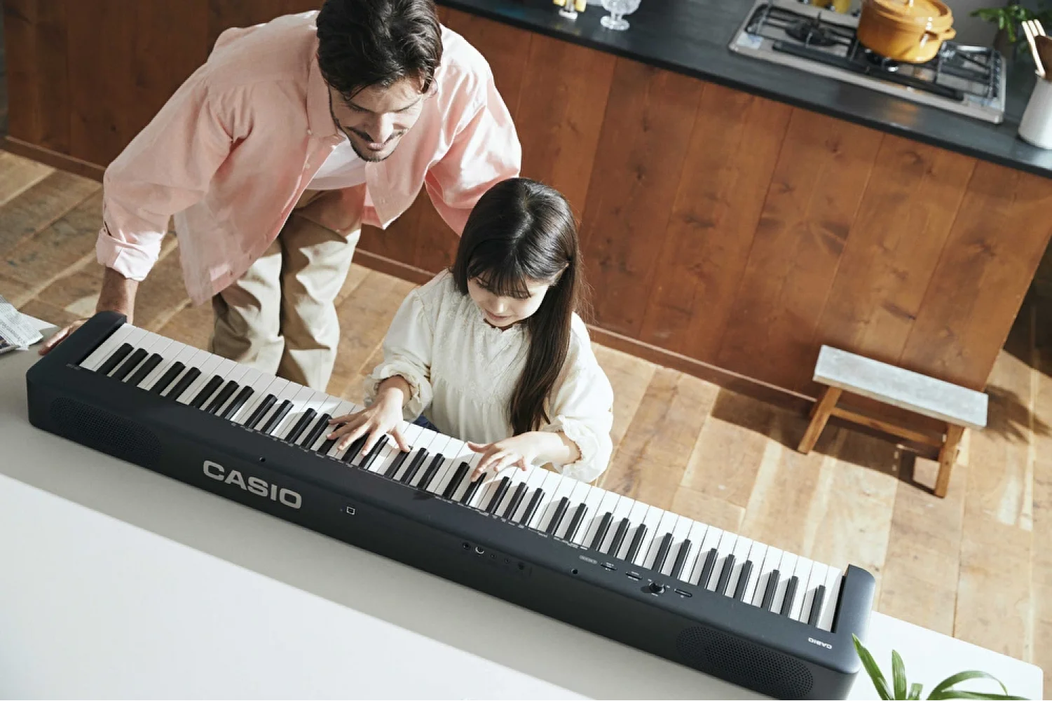 Casio'nun küçük boyutlarda bileşenlere ve yerden tasarruf sağlayan bir iç yapıya sahip özel yüksek yoğunluklu montaj teknolojisi, bu piyanonun ince gövdesinin anahtarıdır. Siyah ve kırmızı olmak üzere iki renk seçeneği mevcuttur. Göz alıcı tek renkli şema ve minimalist tasarım estetiği bir araya gelerek sade ve şık bir piyano deneyimi sunar.