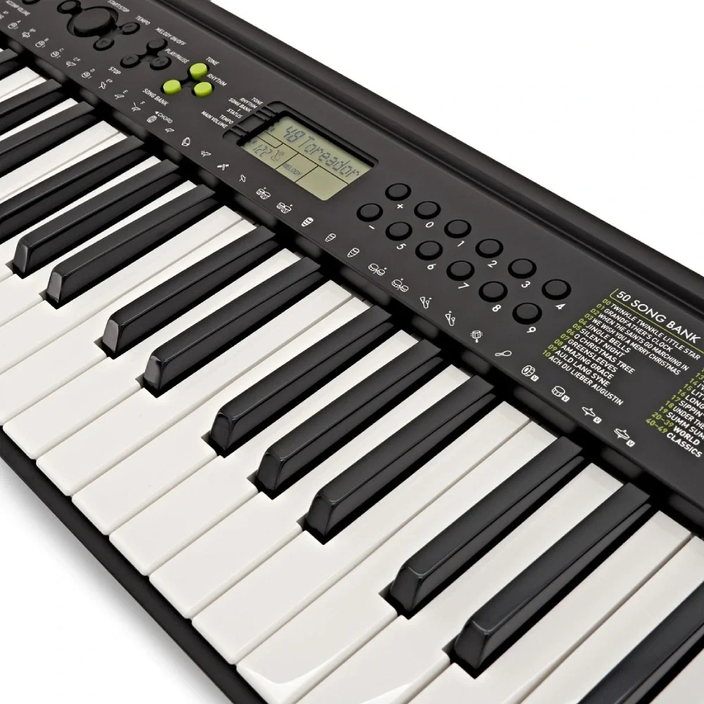 Genç müzisyenler klavyelerinden en iyi şekilde nasıl yararlanacaklarını çabucak anlayacaklar. Okunması kolay bir LCD ekran, sesiniz ve performansınızla ilgili tüm bilgileri - tempo, ton, akorlar ve şarkı seçimi - gösterir. Vuruş göstergesi, çalarken müziğe ayak uydurmanıza yardımcı olmak için kullanışlıdır, parmaklı akor sembolleri ise çalmayı öğrenmeyi kolaylaştırır. Dahası, Transpoze işlevi, diğer müzisyenlere eşlik etmek için kolayca doğru tonu bulmanıza yardımcı olacak.