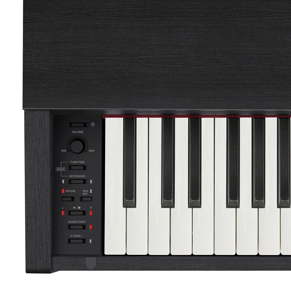 Benzetilmiş abanoz ve fildişi kaplama tuşlar kuyruklu piyano klavyesinin yumuşak dokunuşunun yanı sıra konforlu hissini ve dokusunu da sunar. Çok hassas ayrıntıya sahip kıvrımlı yüzey kaplaması terleme nedeniyle parmak kaymasını önler ve uzun süre çalındığında bile mükemmel bir parmak ucu uyumu hissi verir.