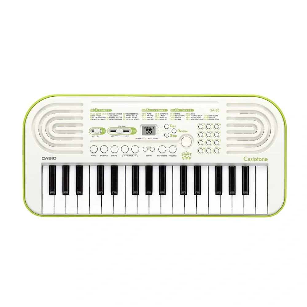 Casio SA-50 Mini OrgKlavye32 mini tuşMaksimum Polifoni32Tonlar100 dahili tonRitimler/Örnekler50 dahili örnekDahili Şarkılar10 (Şarkı Bankası)Ders İşleviMelodi açık/kapalı (Ders bölümü: Melodi bölümü)Diğer işlevler- Ton Düğmeleri (PİYANO, TROMPET, DAVULLAR)