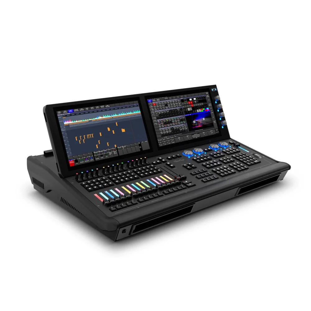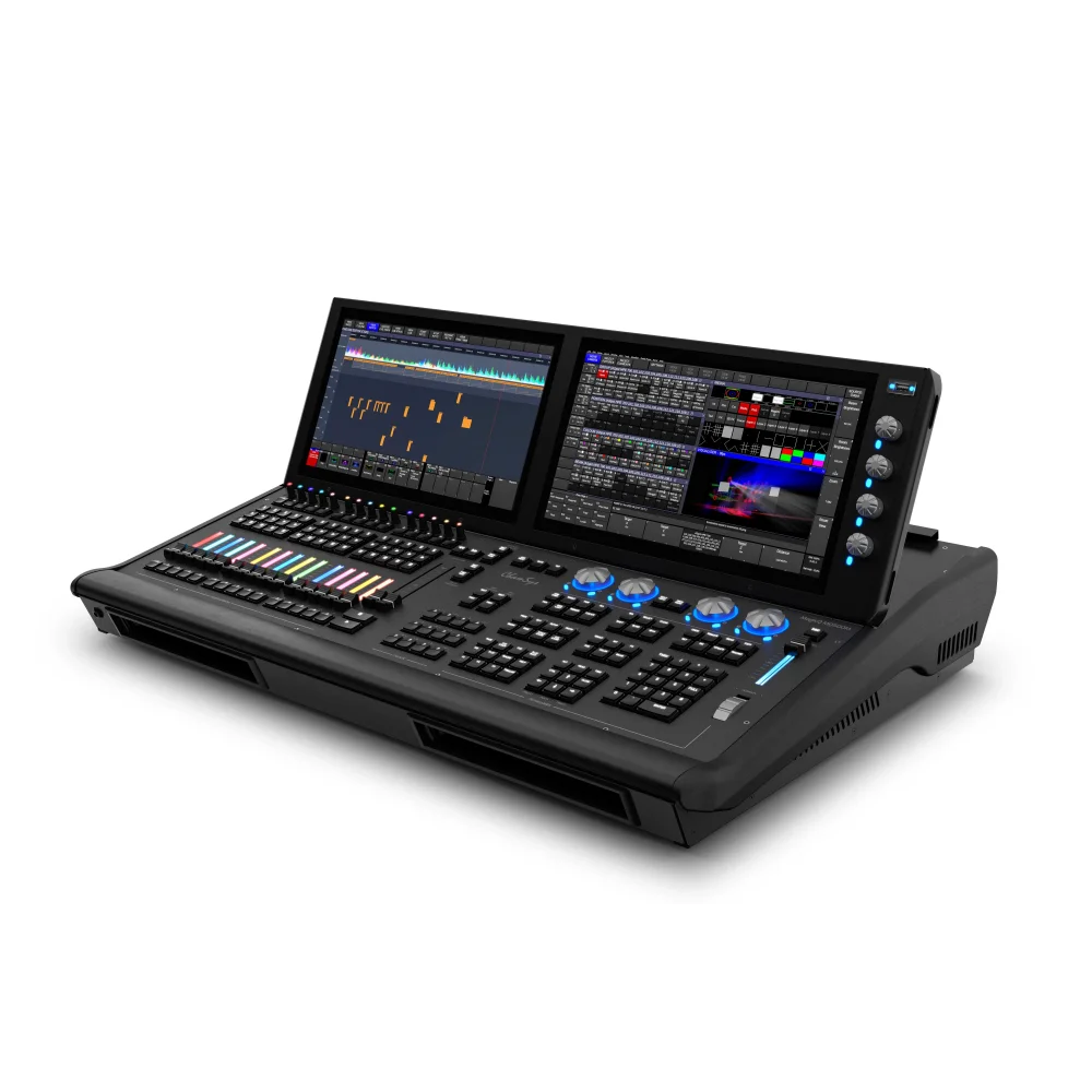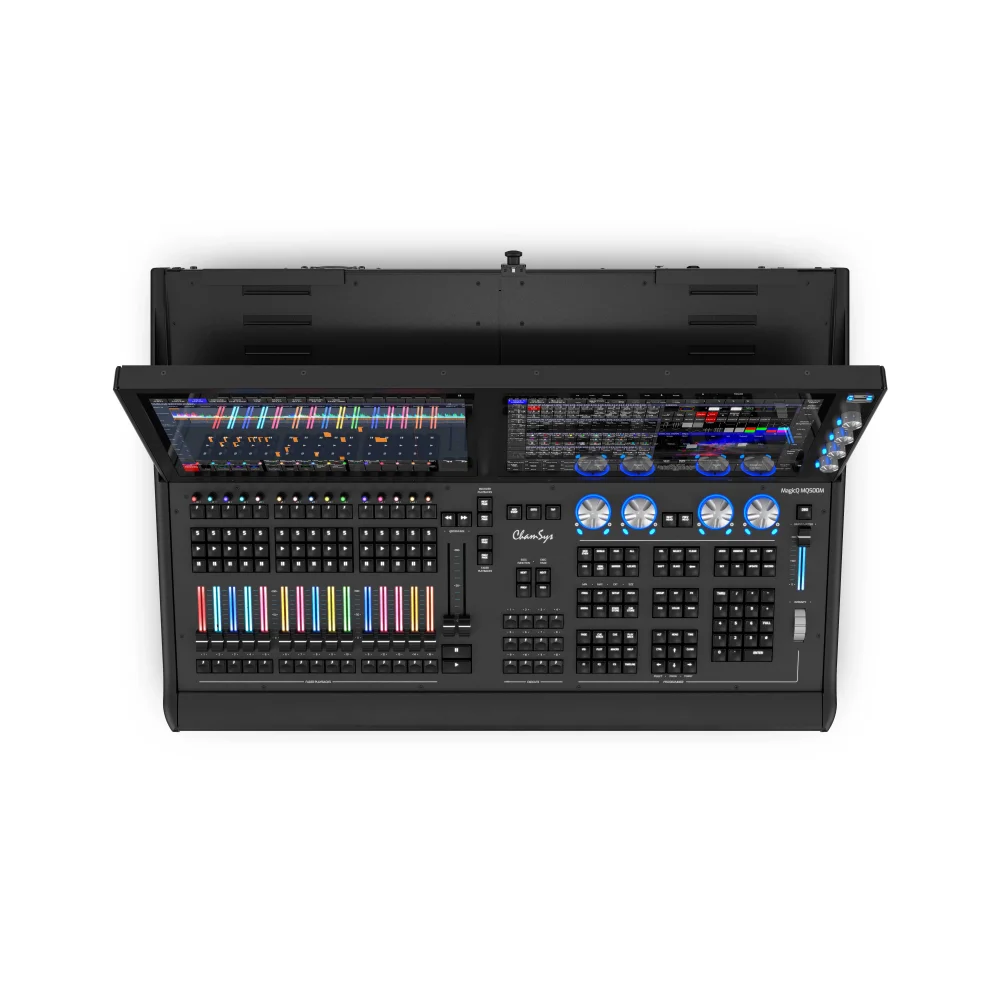 Özellik bakımından zengin MagicQ MQ500M Stadium Wing, üçüncü bir tam HD çoklu dokunmatik ekrana eklenir ve fader ve encoder oynatmalarının sayısını ikiye katlar.