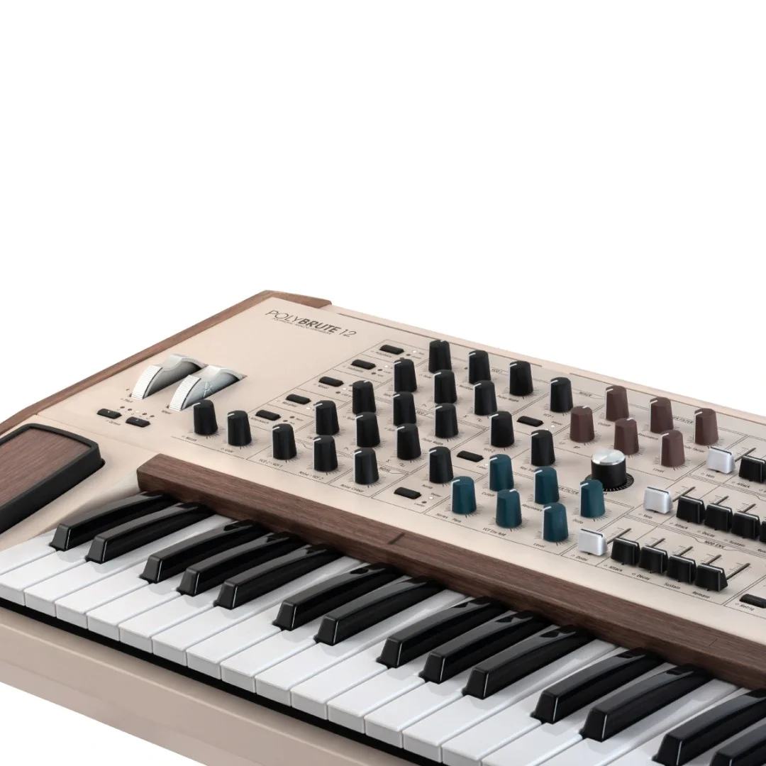 PolyBrute, devrim niteliğindeki FullTouch® MPE klavyesiyle yeni bir çağın kapısını aralıyor; kullanımı son derece keyifli kontrol düğmeleri ve expressive bileşenlere sahiptir. Ceviz ağacı ve dikkat çekici bir alüminyum dış kaplama dahil olmak üzere en kaliteli malzemelerle şekillendirilmiş olan PolyBrute 12, profesyonel müzisyenlerin taleplerini karşılamakla kalmaz, aynı zamanda meraklıları da cezbeder. Sadece görünüş için değil, aynı zamanda Arka kısımdaki havlandırma delikleri sadece şık bir görünüm sağlamakla kalmaz aynı zamanda Polybrute 12'nin tamamen sessiz bir şekilde çalışabilmesi için pasif soğutma sağlar.