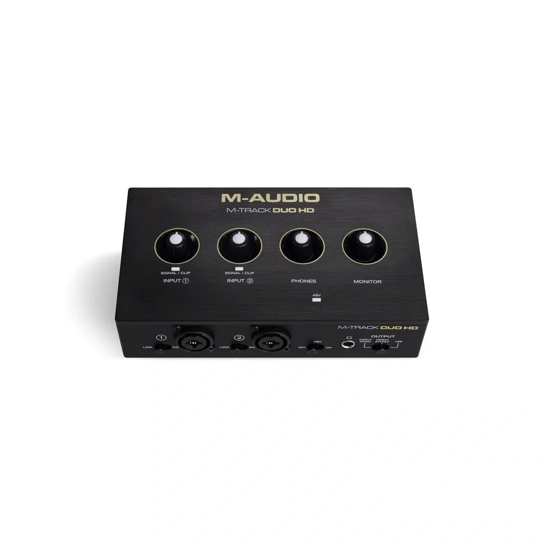 M-Track Duo HD ses arabirimi, tam kararında eklentilerle sadeleştirilmiş bir kontrol setine sahiptir: iki combo XLR/TRS girişi, iki adet ¼ TRS çıkışı, bir kulaklık jakı, son derece şeffaf Crystal™ preamplar, profesyonel kalite dönüştürücüler, seçimlik +48V fantom güç, USB-C bağlantısı ve ses yolculuğunuzu zenginleştirmeye yardımcı olacak yazılımlara erişim.