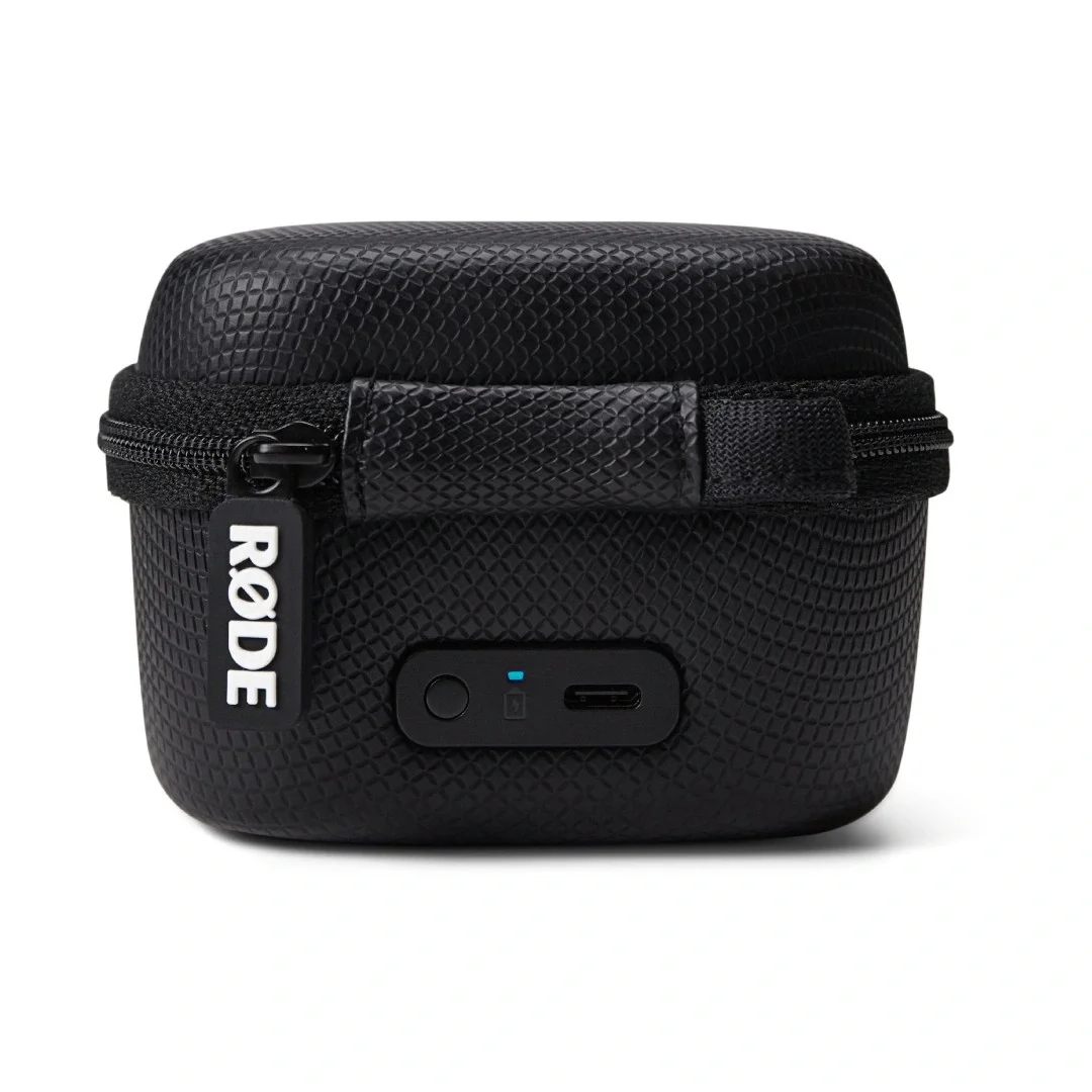Charge Case+, Wireless GO (Gen 3) için kompakt bir taşıma çantasıdır ve sistemi saklarken veya seyahat sırasında güvende tutar. Entegre bir bataryaya sahiptir ve iki tam şarj sağlayarak 21 saate kadar kullanım sunar. Ayrıca, kayıtları aktarmak, ayarları düzenlemek ve yazılım güncellemeleri yapmak için sistemin tamamına eşzamanlı veri erişimi sağlar.