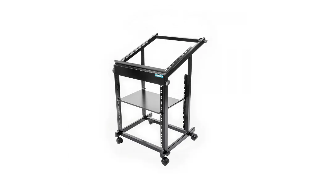 19" Rack Standart genişliğinde, 85 cm. yüksekliğinde Amfi, Mikser, telsiz mikrofon alıcıları vb, cihazları düzenleyici yanları açık metal kabinet & cihaz standır.