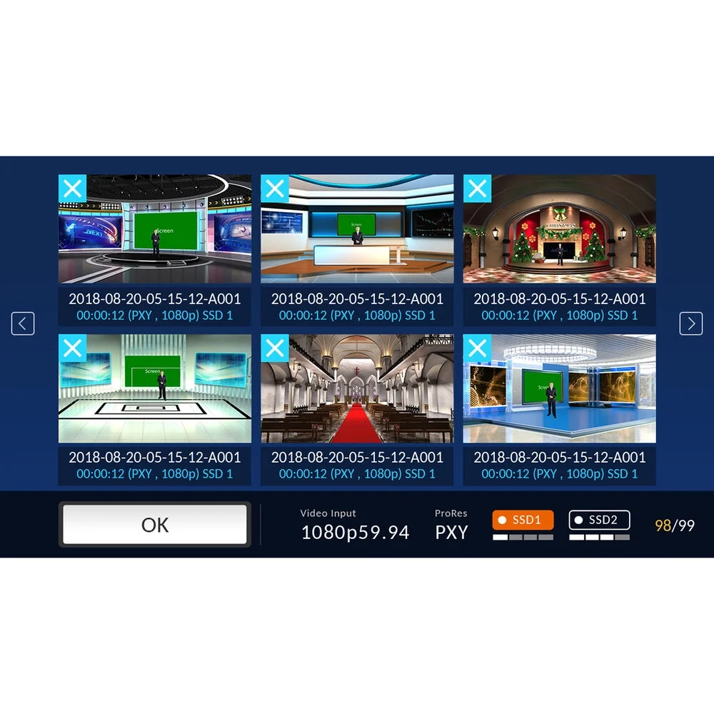 Datavideo ProRes UHD 4K Video Recorder ile bilgisayara ihtiyaç duymadan ProRes 422 MOV formatında UHD 4K video kaydı ve oynatma yapabilirsiniz. Kompakt tasarıma sahip bu kayıt cihazı 1 RU rack montajına uygundur ve 12G/3G-SDI ile HDMI girişlerinden gelen görüntüyü izlemek için parlak, yukarı açılır 5 inç dokunmatik LCD ekran içerir. Aynı anda dört girişe kadar görüntü izlenebilir. Cihaz, UHD 4K’ya kadar videoları ayrı olarak temin edilen çıkarılabilir 2,5" SSD’ye (iki yuvasından birine) kaydedebilir. Ayrıca çift XLR giriş ve çıkış üzerinden dengeli analog ses izleme ve kayıt desteği sunar.