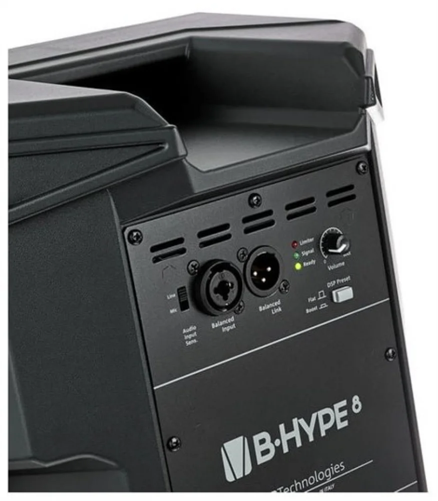 Yeni B-HYPE 8 çok yönlü bir aktif hoparlördür. Bir adet 1 "sıkıştırma sürücüsü (1" ses bobini) ve bir adet 8 "woofer (1,5" ses bobini) ile donatılmıştır. Dağılım paterni dikey eksende asimetriktir ve yatay bir paftada çeşitlendirilmiştir (üst ve alt). Bu, daha dar ve etkili bir ses kapsama alanı sağlar ve yankı uyandıran ortamlarda daha iyi bir performans sağlar. Birleşik giriş (kaynak türü seçimi ile) dinamik bir mikrofon ve standart hat girişi için uygun, kolay ve çok yönlü bir kullanım sağlar. Kullanıcı uygun DSP önayar işlevi ile alt ve üst frekansları geliştirebilir. Dengeli bir bağlantı çıkışı, ikinci bir hoparlöre ses bağlantısına izin verir.