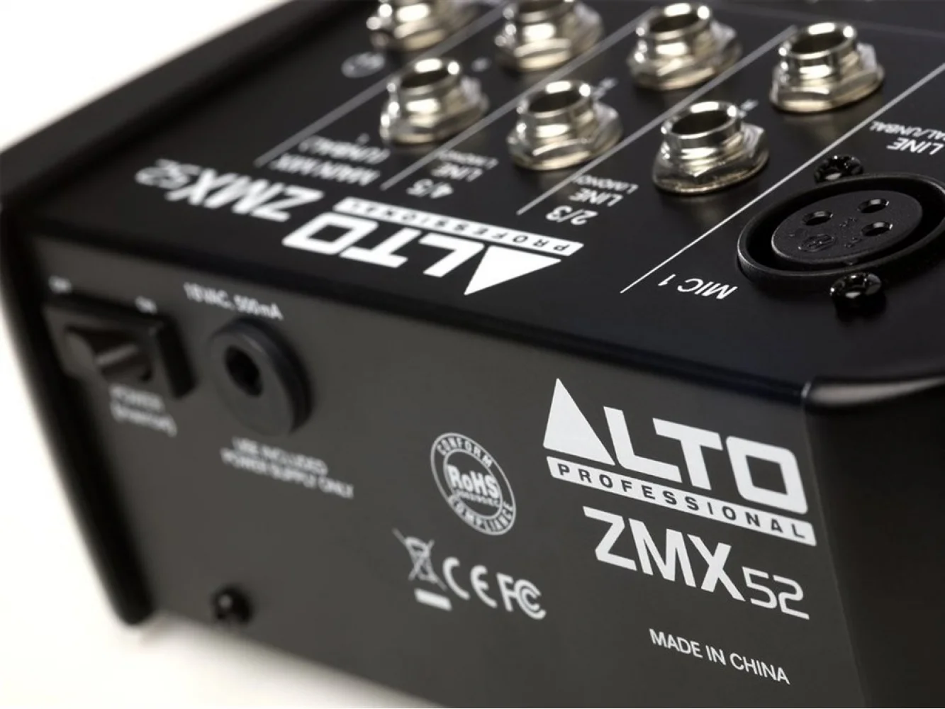 - Compact mixer for live sound, mobile A/V, DJ and home studio use