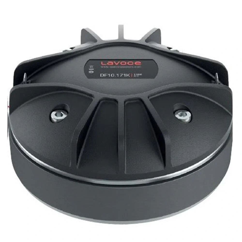 Lavoce DF10.171K, 1 inç boyun çapına sahip kompakt bir sıkıştırma sürücüsüdür. 110 watt program gücü kapasitesi ve 106,5 dB/SPL hassasiyeti ile güçlü ve net bir ses sunar. 1.7 inç Edgewound CCA ses bobini ve FEM optimizasyonlu motor, phaseplug ve diyafram tasarımı sayesinde tiz frekanslarda detaylı ve net ses performansı elde edilir. 1200 Hz – 20000 Hz arasındaki frekans aralığında mükemmel bir ses sunarak profesyonel ses uygulamaları için idealdir.