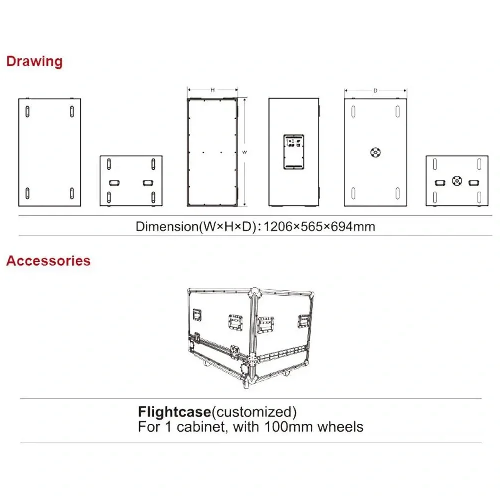- Hoparlör Boyutları (W×H×D): 1206x565x694mm