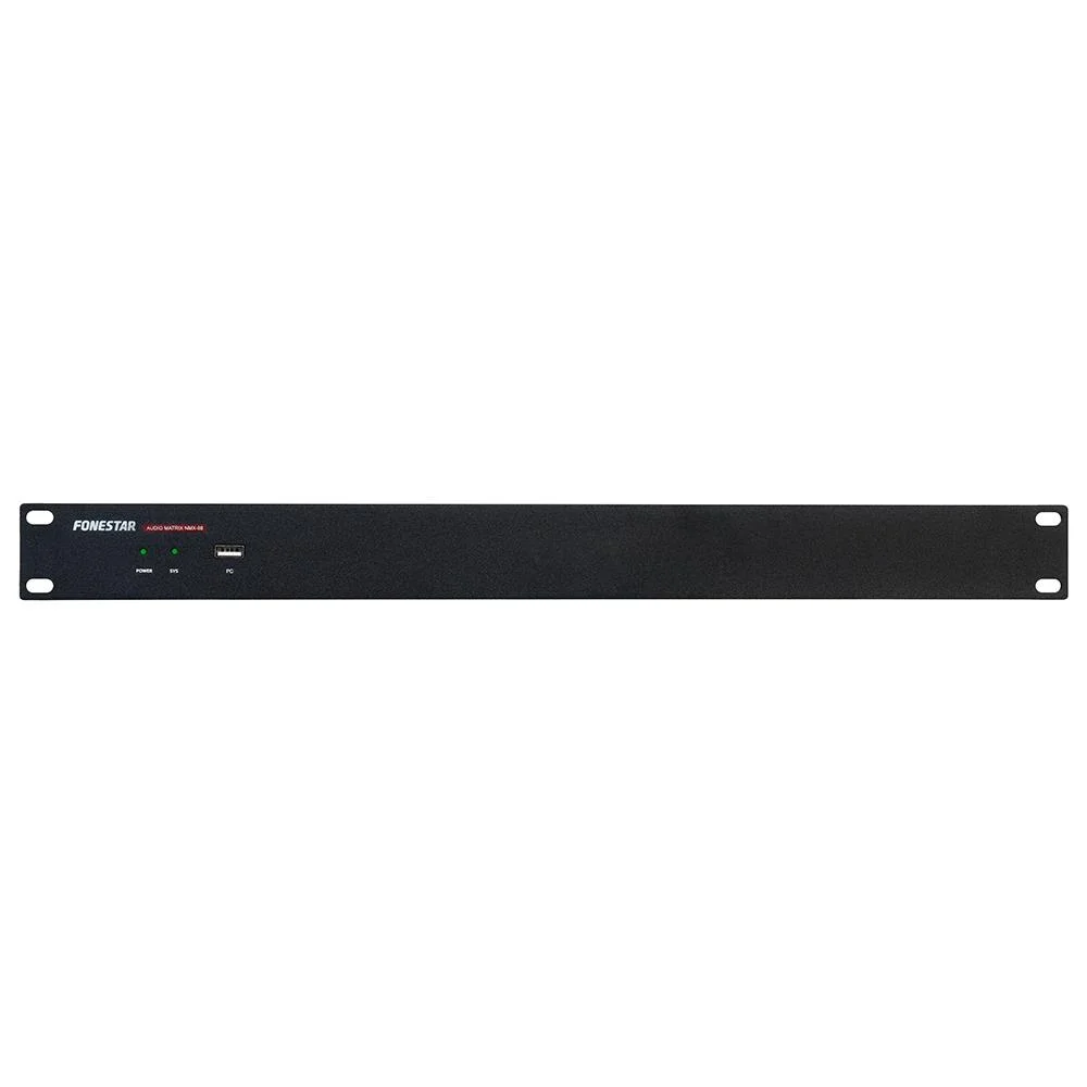 Fonestar NMX-88, sabit kurulumlar için geliştirilmiş, DSP tabanlı 8 giriş / 8 çıkış analog ses matrisi çözümüdür. Konferans salonları, oteller, ticari alanlar ve çok zonlu ses dağıtım sistemlerinde yüksek ses kalitesi ve esnek kontrol sunmak üzere tasarlanmıştır. Gelişmiş sinyal işleme algoritmaları sayesinde karmaşık ses sistemlerini kullanıcı dostu bir yapıda yönetme imkânı sağlar.