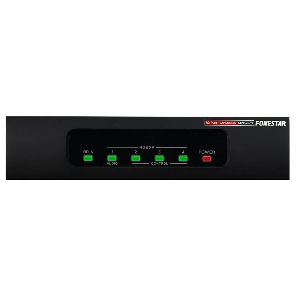 Fonestar MPX-440X, MPX-4088 ses matrisi sistemleri için geliştirilmiş 4 portlu RD genişletme ünitesidir. Büyük ölçekli ve çok zonlu ses dağıtım projelerinde, sistemin bağlantı kapasitesini artırarak daha fazla ses ve kontrol modülünün entegre edilmesine olanak tanır. Ticari tesisler, oteller, konferans salonları ve spor kompleksleri gibi profesyonel kurulumlarda ölçeklenebilir bir altyapı sunar.