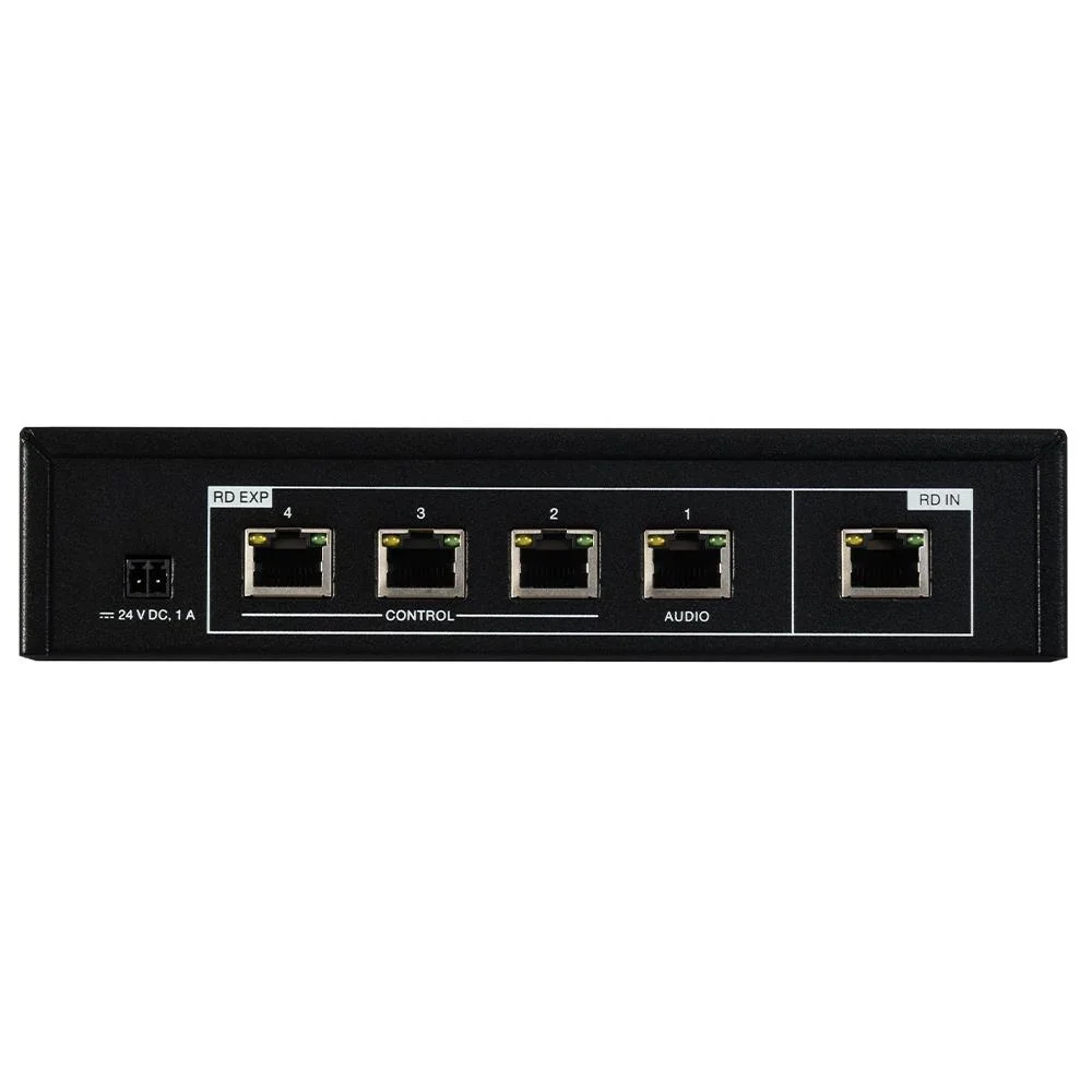 MPX-440X, tek bir RD giriş üzerinden 4 ayrı RD port genişlemesi sağlar. Bu yapı sayesinde MPX-4088 matrisine ek ses ve kontrol modülleri kolayca bağlanabilir. Sistem, RJ-45 (Cat 5e) kablolama üzerinden çalışarak hem kurulum hızını artırır hem de kablo karmaşasını azaltır.