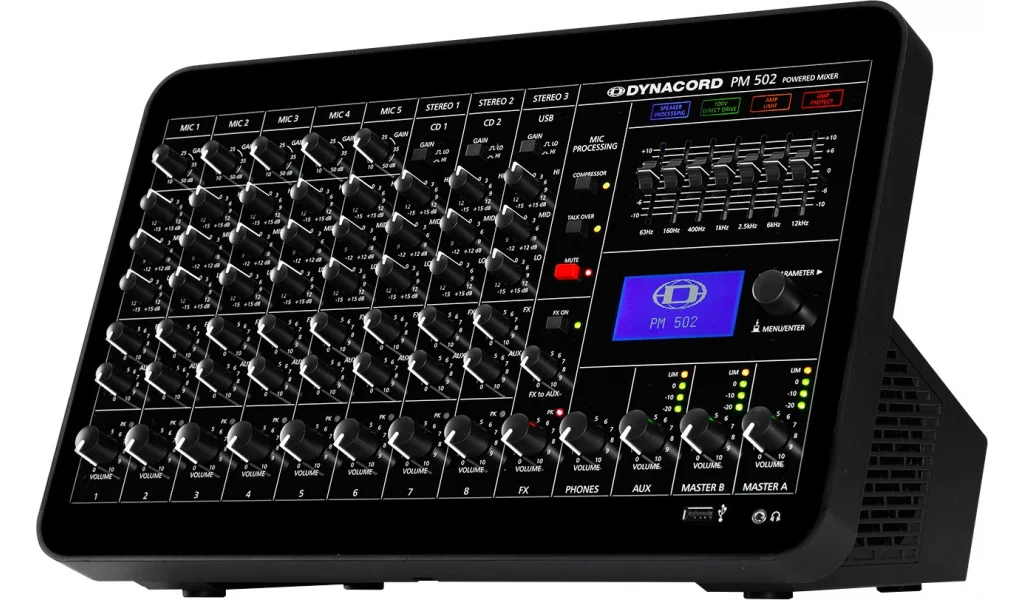 Giriş yapısı, tüm özellik paketi ve bağlantıyla birlikte bu mikseri Bistrolar, küçük kulüpler, butikler, otel barlarından kiliselere, camilere ve çok çeşitli benzer uygulamalara kadar birçok kurulumun kalbinde konumlandırıyor. Ayrıca PM 502 çok sayıda canlı uygulama için son derece çok yönlü bir araçtır. Canlı uygulamalar veya prova mekanları için kompakt ve hafif bir çözüm arayan eğlence sanatçıları, DJ'ler ve küçük gruplar için ideal seçim olacaktır. Ön taraftaki yerleşik MP3 Çalar, kullanıcının önceden kaydedilmiş müziği bir USB bellekten veya sabit sürücüden kolayca çalmasına olanak tanır. Arkadaki ek dijital USB arayüzü aynı zamanda bir PC ile temel kayıt yapılmasına da olanak tanır.