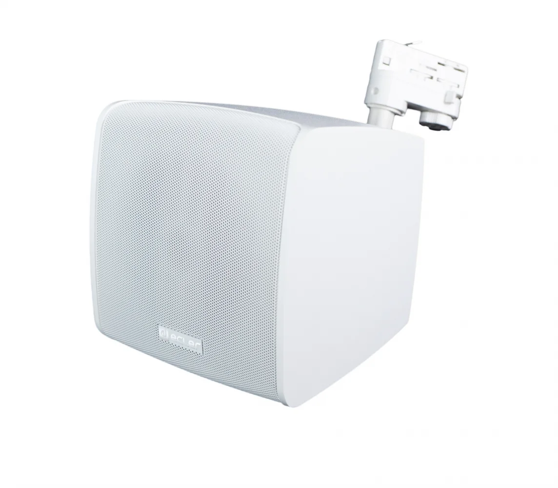 under the control of the Master unit, featuring an AUX output (Euroblock) and a installation system which is compatible with ceiling light rails. Alternatively, wall mount or desktop installation is as well possible by means of the included accessories. Dimensions (without accessories) 173x180x185 mm / 6,81" x 7,08" x 7,28". Weight 2,4kg / 5.29lb. White colour. Delivered by units. Price per unit.