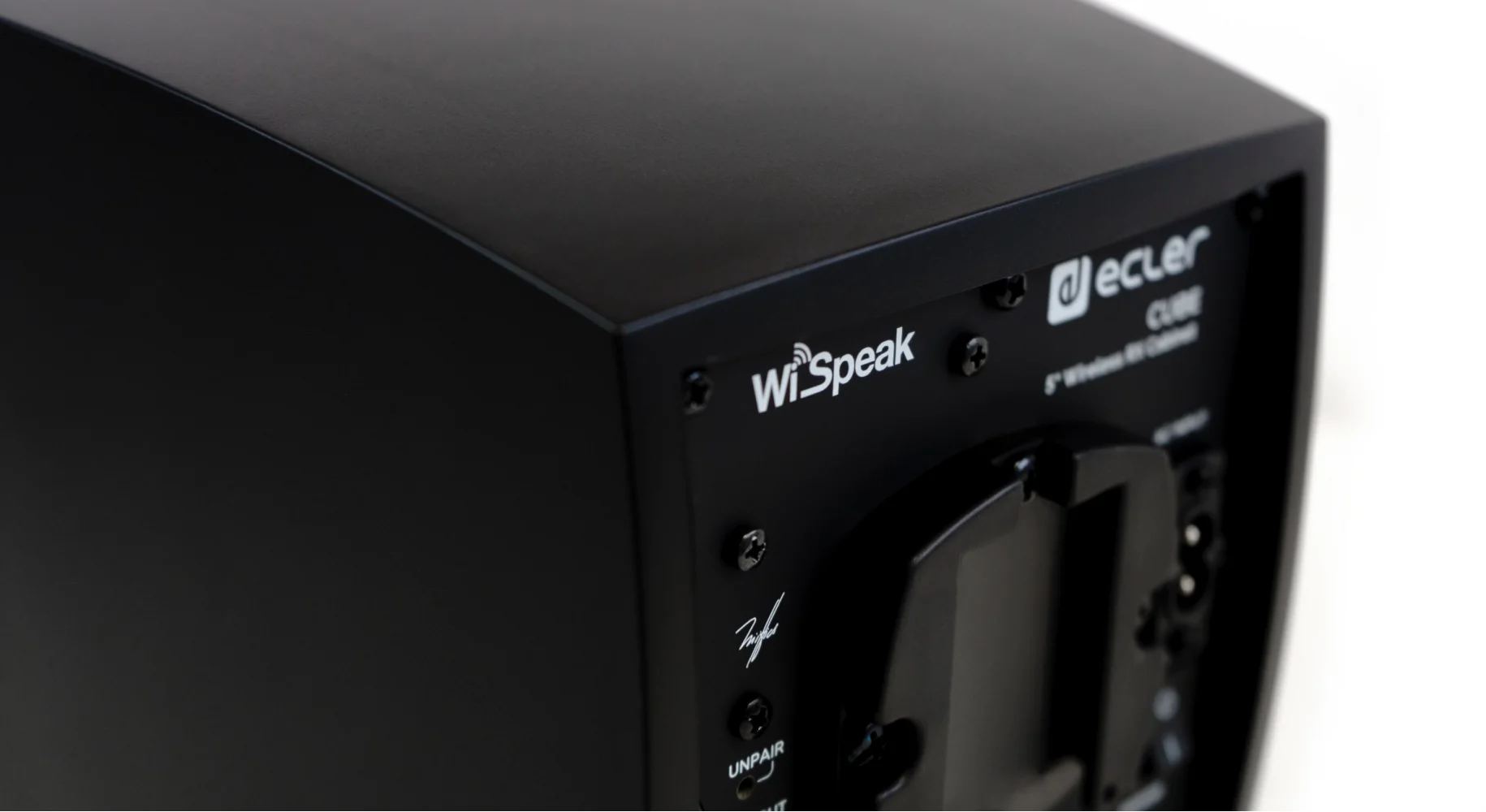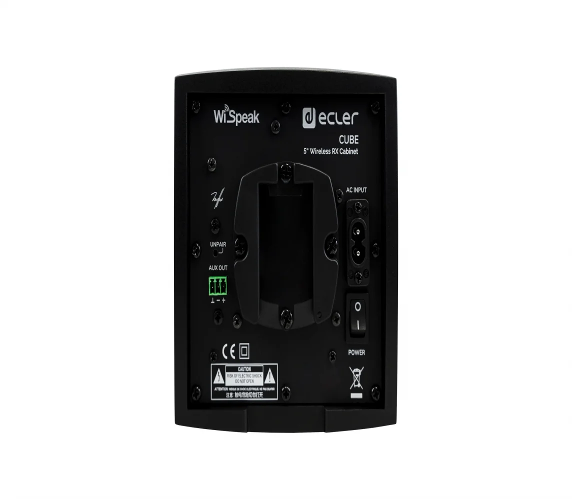 WiSpeak CUBE is a self-powered 5" loudspeaker cabinet with wireless audio reception and control capabilities