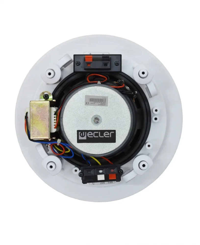 2-way cost-effective in-ceiling loudspeaker with a great sound performance. It features a 5,25" woofer and a 0,75" tweeter, 20 WRMS @ 8 Ω nominal power and 100V line transformer with 3 and 6 W power selections. Internal diameter 164mm. External diameter 202mm. Required depth: 65mm. Weight 1.0 kg Delivered by master carton of 8 units. Price per unit.