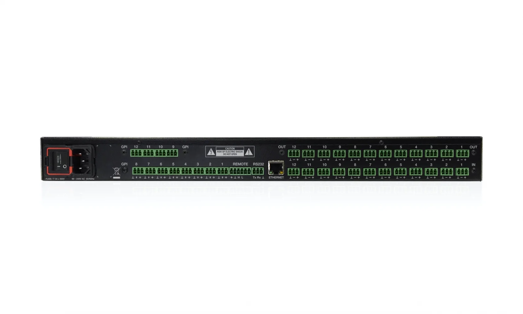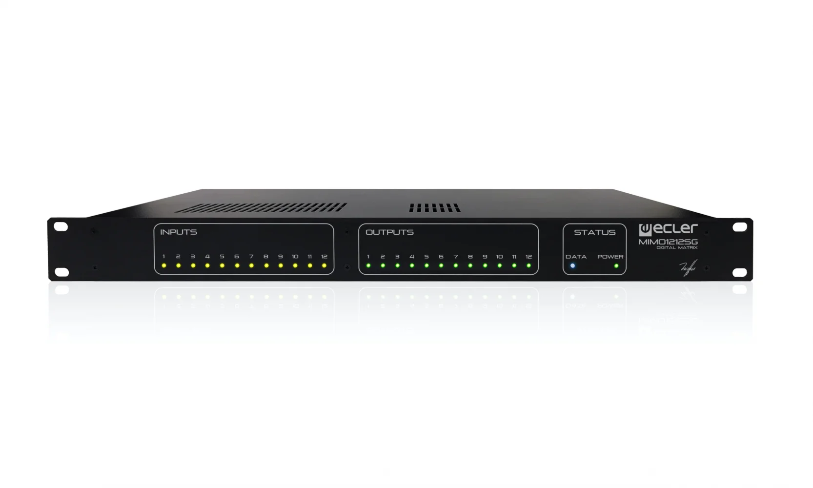 12 balanced MIC/LINE inputs / 12 balanced outputs digital audio matrix, fully programmable through EclerNet