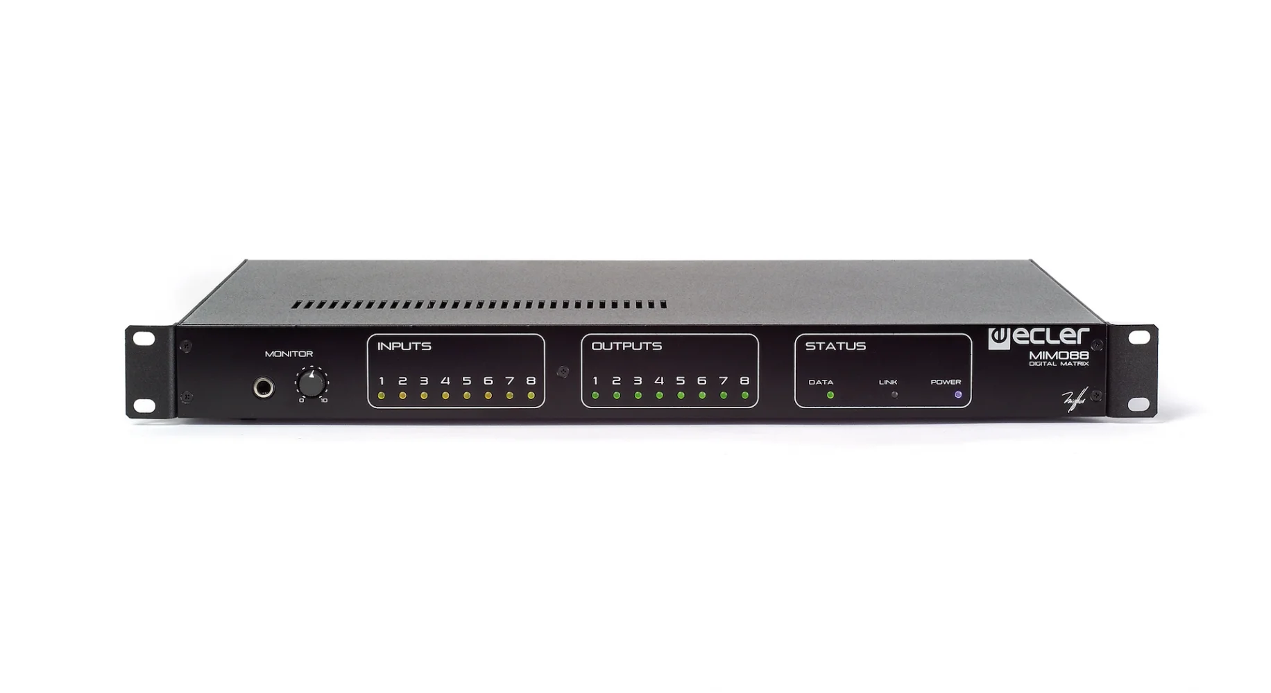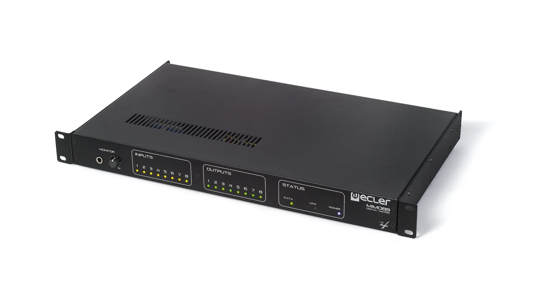8 balanced MIC/LINE inputs / 8 balanced outputs + 2 monitor outputs digital audio matrix, fully programmable