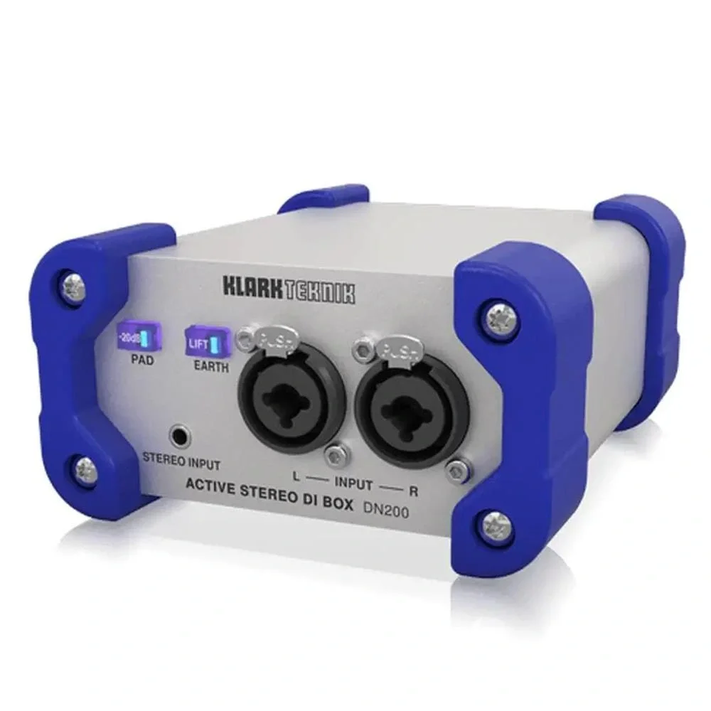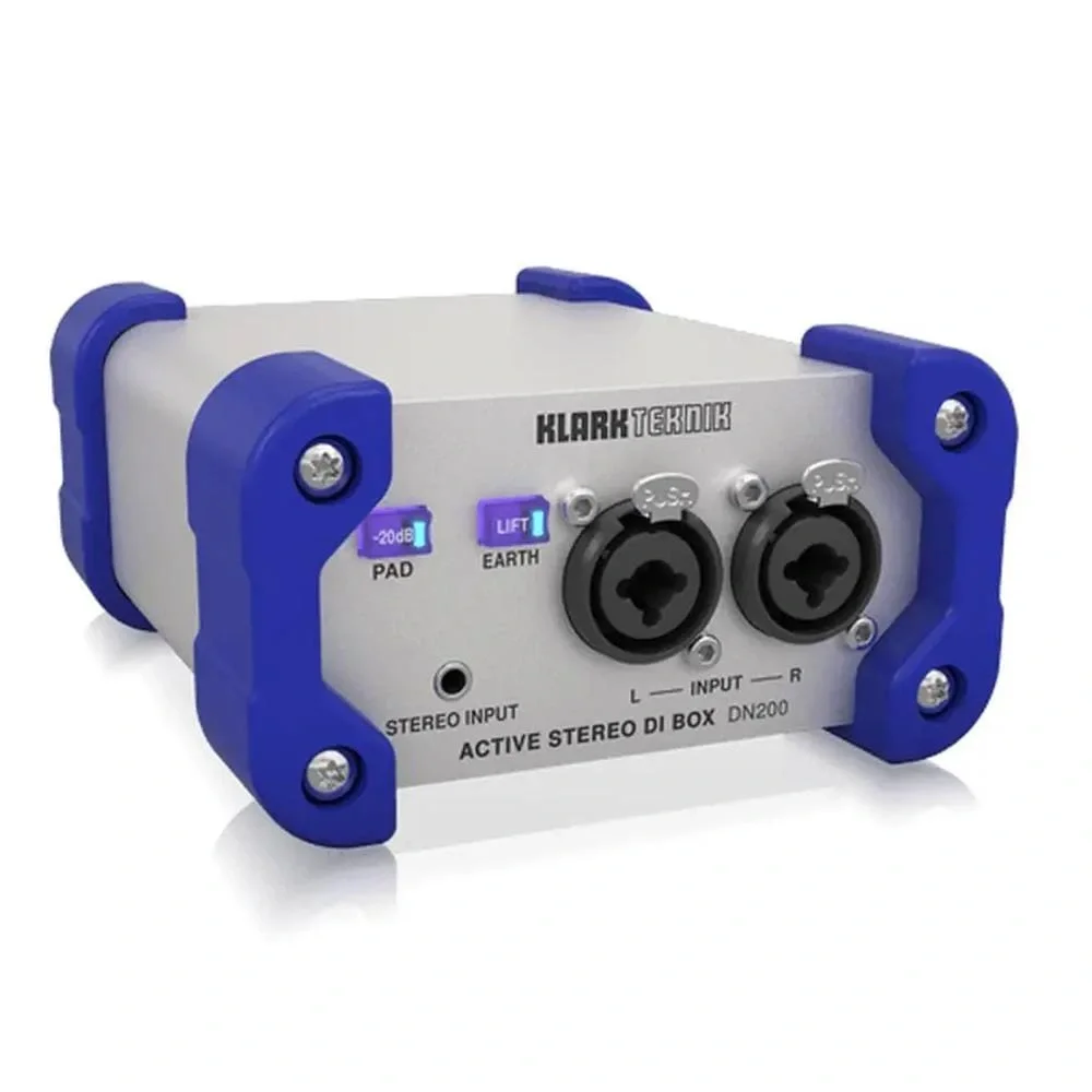 Klark Teknik DN200, canlı performanslar ve stüdyo uygulamaları için tasarlanmış, yüksek performanslı bir aktif stereo DI box cihazıdır. Bu cihaz, enstrüman ve line seviyesindeki sinyallerin doğrudan miksere veya ses sistemine bağlanmasını sağlayarak ses kalitesini artırır.