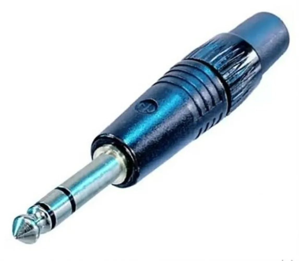 3 pole 1/4" professional phone plug, black metal housing, Nickel contacts