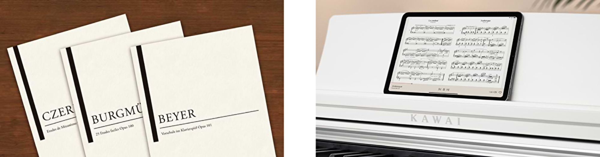 CX202, Kawai’nin PiaBookPlayer nota görüntüleyici uygulamasıyla da uyumludur. Bu uygulama sayesinde klasik etütler ve çeşitli eserlerin notaları, enstrümanın kablosuz Bluetooth bağlantısı üzerinden akıllı telefon veya tablet ekranında görüntülenebilir.