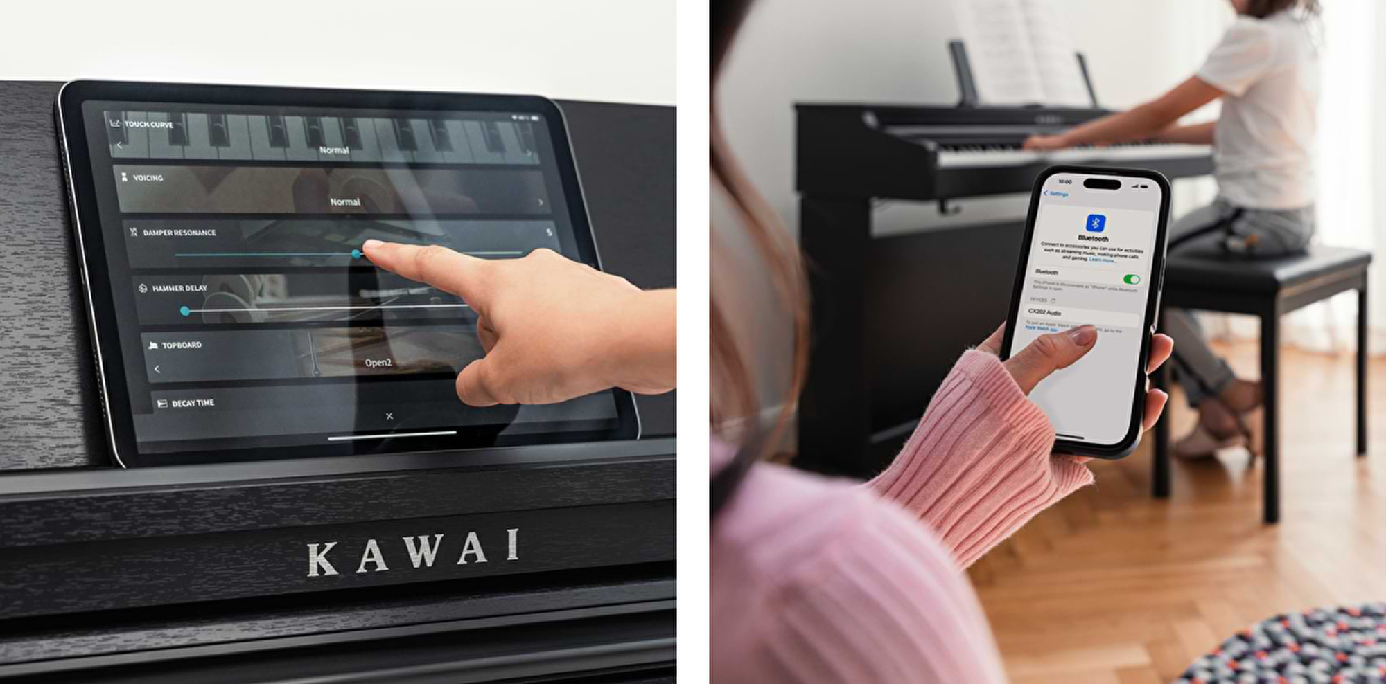 Bir telefon, tablet veya dizüstü bilgisayar ile eşleştirildiğinde, CX202 kullanıcıları öğrenme ve çalma deneyimlerini zenginleştiren birçok müzik uygulamasından faydalanabilir veya şarkı ve videolardan gelen sesleri ek kabloya ihtiyaç duymadan doğrudan enstrümanın güçlü hoparlör sistemi üzerinden dinleyebilirler.