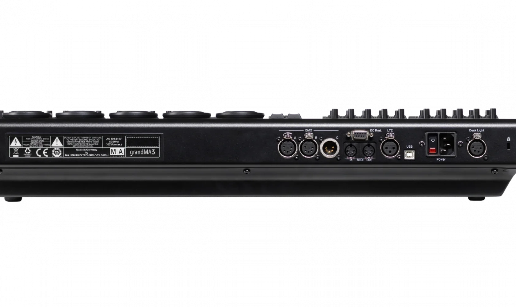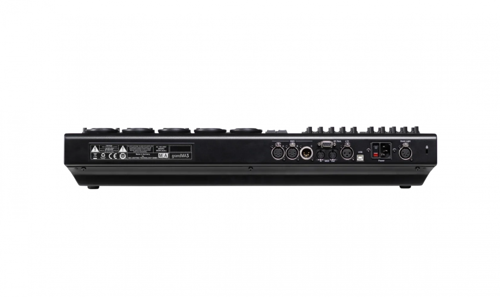 - Bağlantılar: 3 DMX portu, MIDI giriş/çıkış, lineer zaman kodu, USB ve DMX veri aktarımı için Ethernet protokollerine sahiptir.