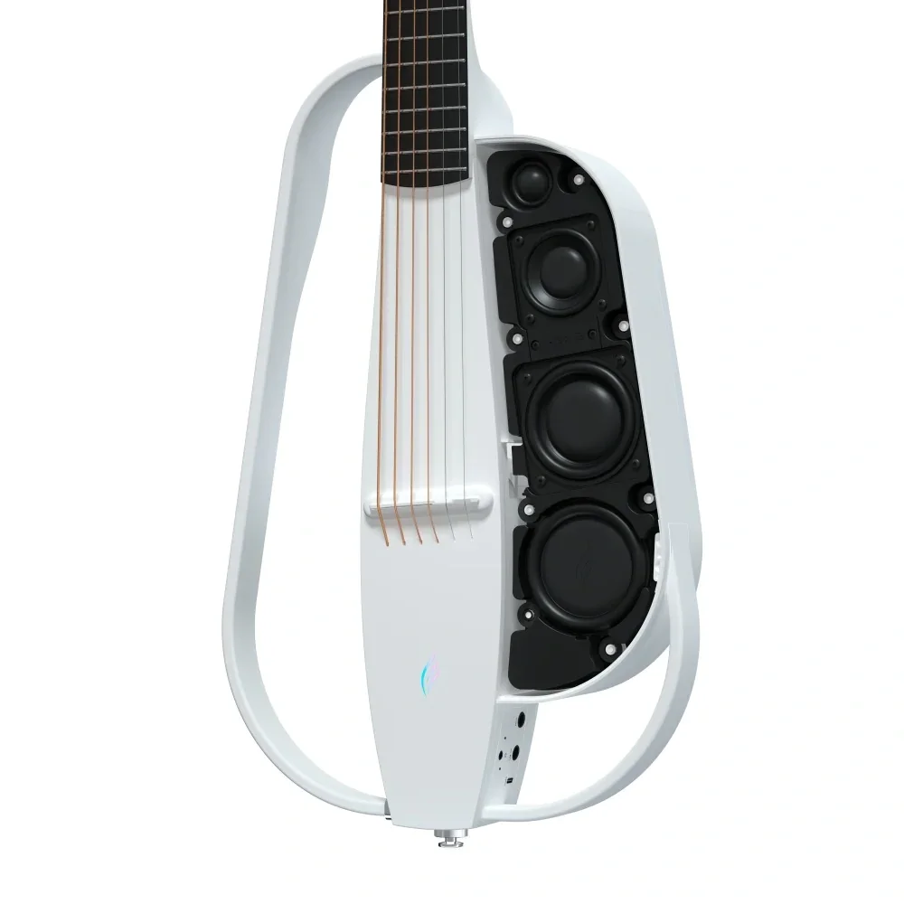 TEKNİK ÖZELLİKLER   ModelNEXG 2 NEXG 2 Boyut: 38 inç Tam BoyutRenkBeyazHoparlör80W (maks.) - 12,5W woofer*2 ve 15W TwitterGövde MalzemesiKarbon FiberFretboardYarıçap (16") - Karbon FiberSomun Genişliği1-11/16 İnç & Sıfır Perde TasarımıSaddleKemikÖlçek Uzunluğu23,7 inçTellerD'Addario® YP-XSPerdeler20 (Yuvarlak Uçlu Nikel Gümüş)BitişSatenPil43,68Wh / 2600mASistemEnya ES3 Akıllı SesEkran2 inç renkli dokunmatikAğırlık6,8 lbs.