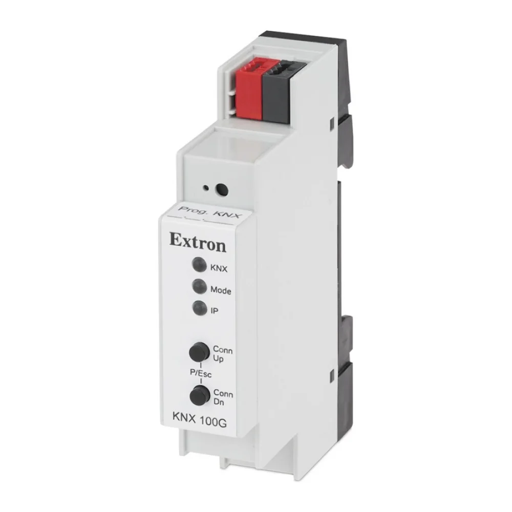 Extron KNX 100G, Extron Pro Serisi kontrol sistemiyle birden fazla bina yönetimi disiplininin kontrolünü ve izlenmesini sağlayan kompakt bir IP KNX Arayüzüdür. KNX 100G, KNX cihazlarının durumunu kontrol etmek ve geri bildirim almak için çift yönlü iletişim sağlar. Bu, aydınlatma sistemlerinin, pencere gölgeliklerinin ve oda iklim kontrolünün TouchLink Pro dokunmatik panelden veya MediaLink Plus kontrol cihazından kontrol edilmesini sağlar. Extron Pro Serisi kontrol sistemine Extron KNX 100G Arayüzü eklemek kolaydır ve ETS - Mühendislik Aracı Yazılımı kullanılarak minimum düzeyde konfigürasyon gerektirir. KNX 100G için Extron Global Yapılandırıcı cihaz sürücüsünü veya Global Scripter® modülünü kullanarak gerekli KNX grup adreslerini yapılandırarak KNX kontrolünü hızlı bir şekilde uygulayın.