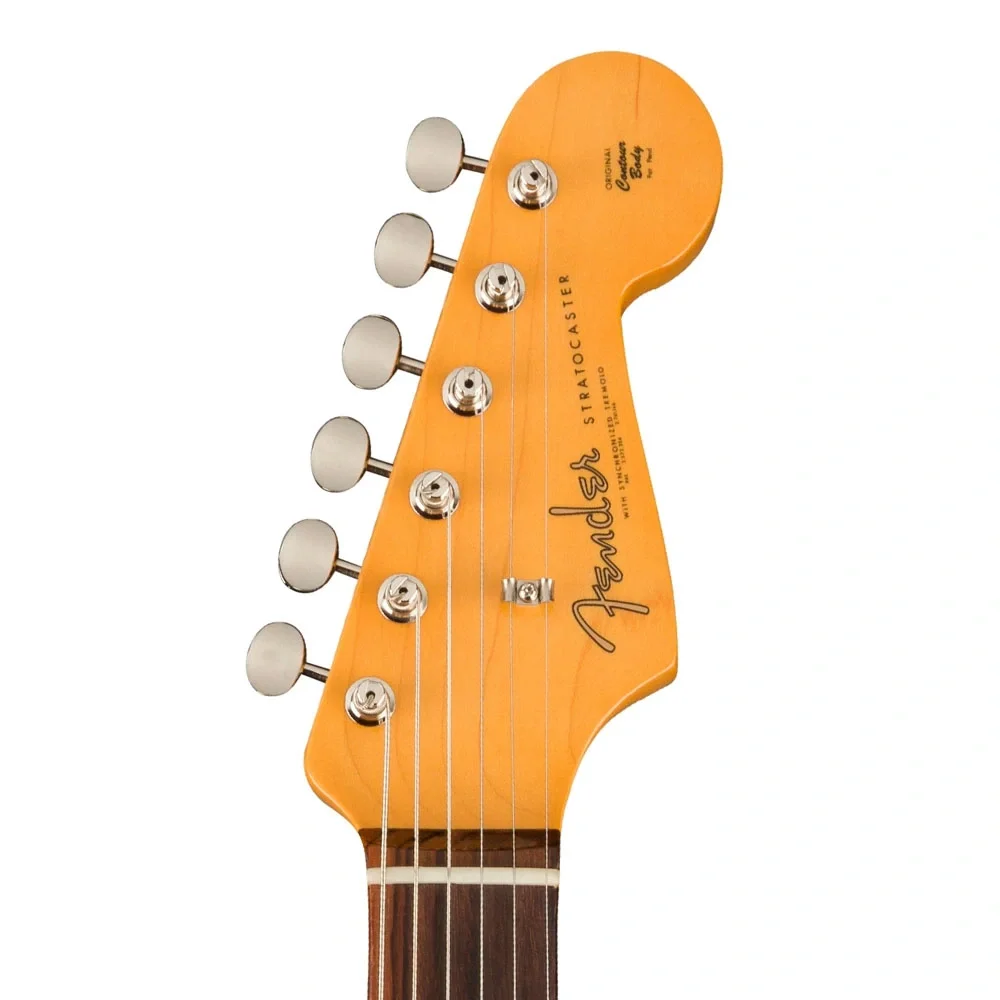 50'lerin sonlarında ve 60'ların başlarında, Fender müzik aletlerinin popülaritesi arttı ve Fender ürün yelpazesi birçok harika yeni enstrümanı içerecek şekilde genişlese de, Stratocaster® üstün oldu. 1961'de Stratocaster, daha canlı kırmızı ve daha koyu siyah kenarla yeniden formüle edilmiş 3 Renkli Sunburst ve Strat'ın imza kıvrımlarını vurgulayan 3 katlı bir pickguard ile daha rafine bir estetik kazandı.