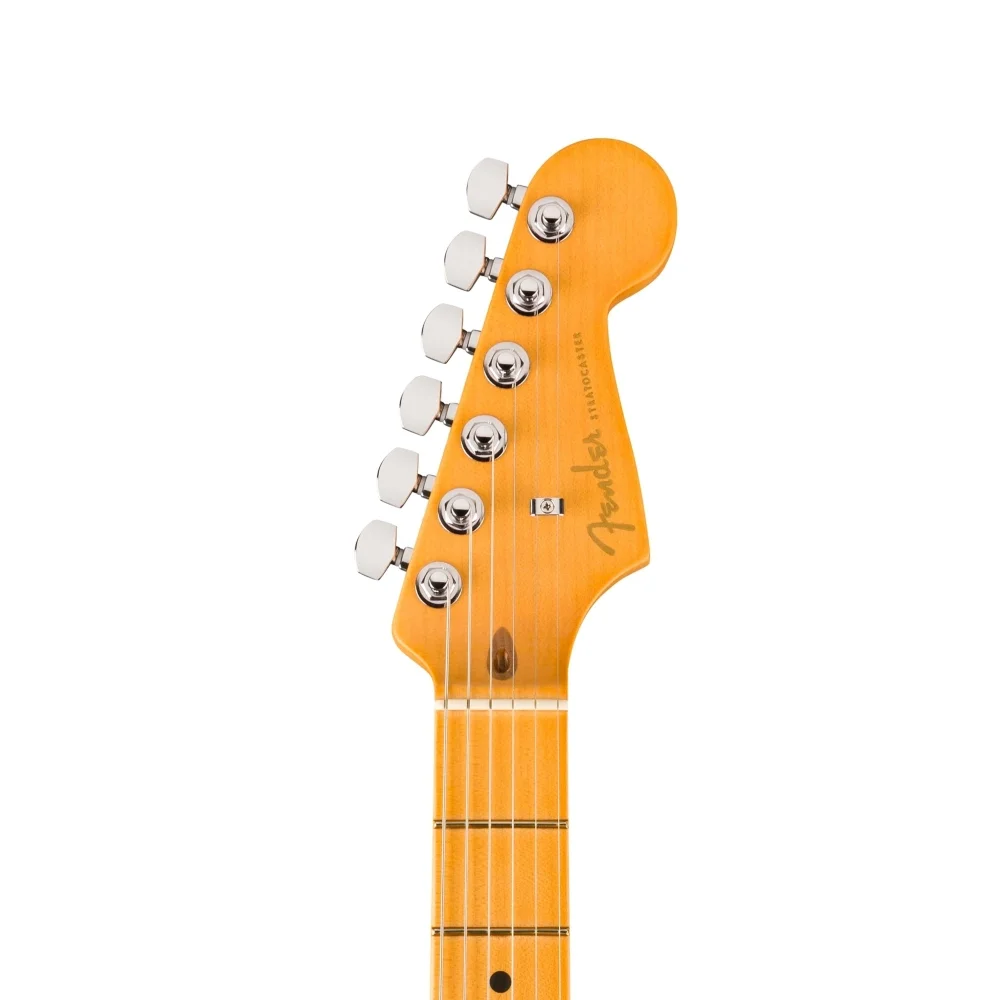 Arka planda, üçlü Ultra II Noiseless™ Vintage Strat® manyetik seti, tatlı, berrak temiz tonlardan yakıcı lead tonlara kadar her şeyi sunar; hepsi istenmeyen gürültü olmadan. Patentli S-1™ anahtarı, ekstra manyetik konfigürasyonları akıllıca açığa çıkararak daha fazla tonal çeşitlilik sağlar. Ek olarak, sahneye hazır özellikler arasında pop-in kolları ile 2-Noktalı American Ultra senkronize tremolo, parlatılmış paslanmaz çelik blok saddle'lar, çelik blok, deluxe kilitli burgular, yumuşak dokunuşlu düğmeler ve 1 katmanlı eloksallı alüminyum pickguard yer alır.