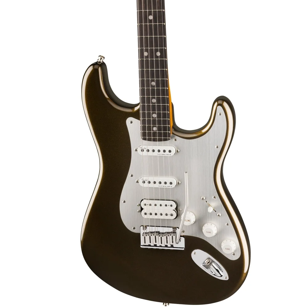 Donanımda, Ultra II Noiseless™ Hot Strat® manyetikleri ile bir arada kullanılan Haymaker™ Humbucker, tatlı, kristalin temiz tonlardan yakıcı sololara kadar her şeyi uğultusuz bir şekilde sunar. Patentli S-1™ anahtarımız, Haymaker’ı akıllıca bölerek daha fazla ton çeşitliliği sunar. Ekstra yol dostu özellikler arasında, pop-in kolu olan 2 noktalı American Ultra senkronize tremolo, parlatılmış paslanmaz çelik blok saddle'lar, çelik blok, deluxe kilitli akort burguları, yumuşak dokunuşlu düğmeler ve 1 katmanlı anodik alüminyum pickguard bulunmaktadır.