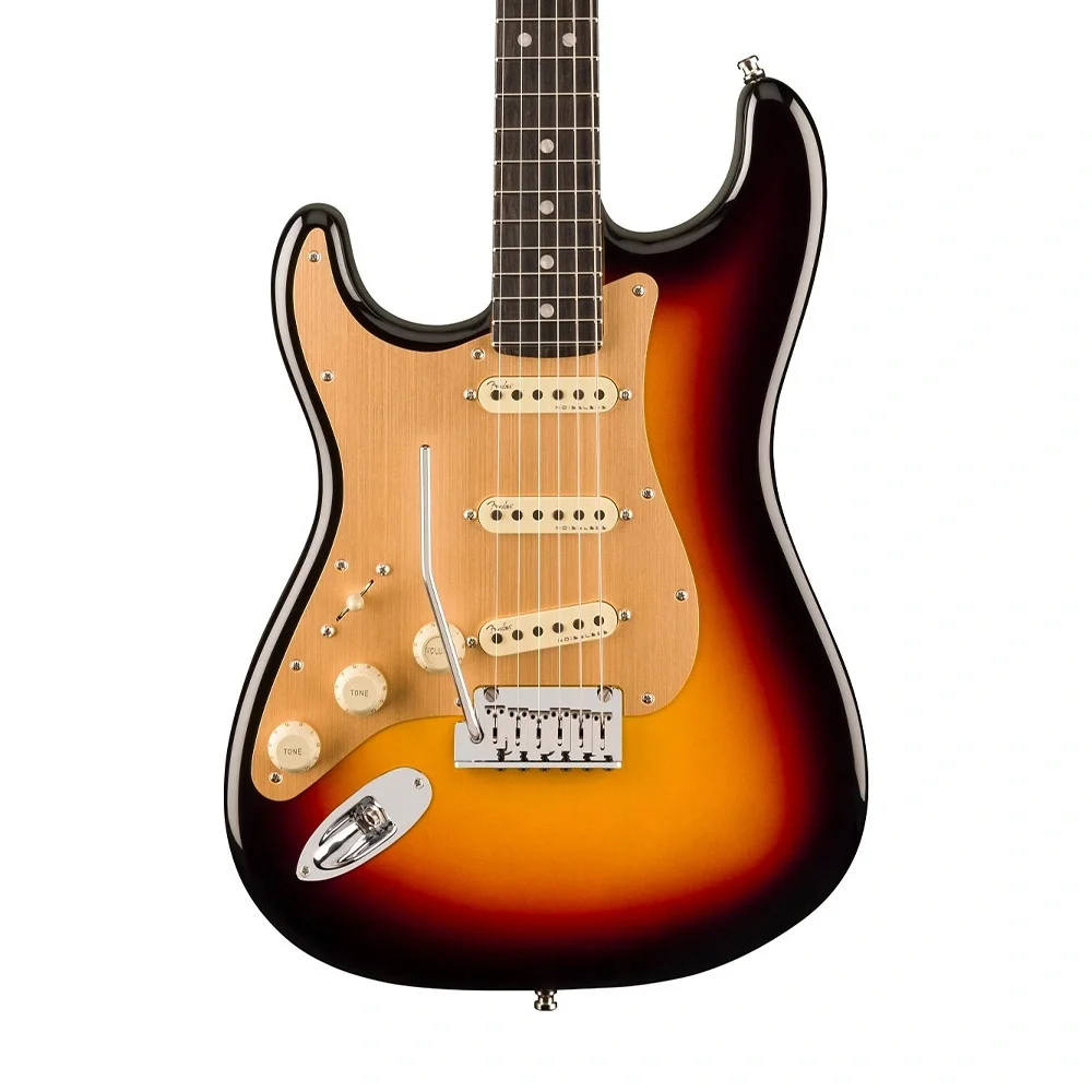 Fender American Ultra II Stratocaster Abanoz Klavye Ultraburst Solak Elektro Gitar, seçilmiş alder gövdesi ve şekillendirilmiş konturlarıyla hem konfor hem de estetik sunar. Çeyrek kesim akçaağaç sapı, Modern D profili ve Ultra Satin yüzeyiyle pürüzsüz ve duyarlı bir çalma deneyimi sağlar.