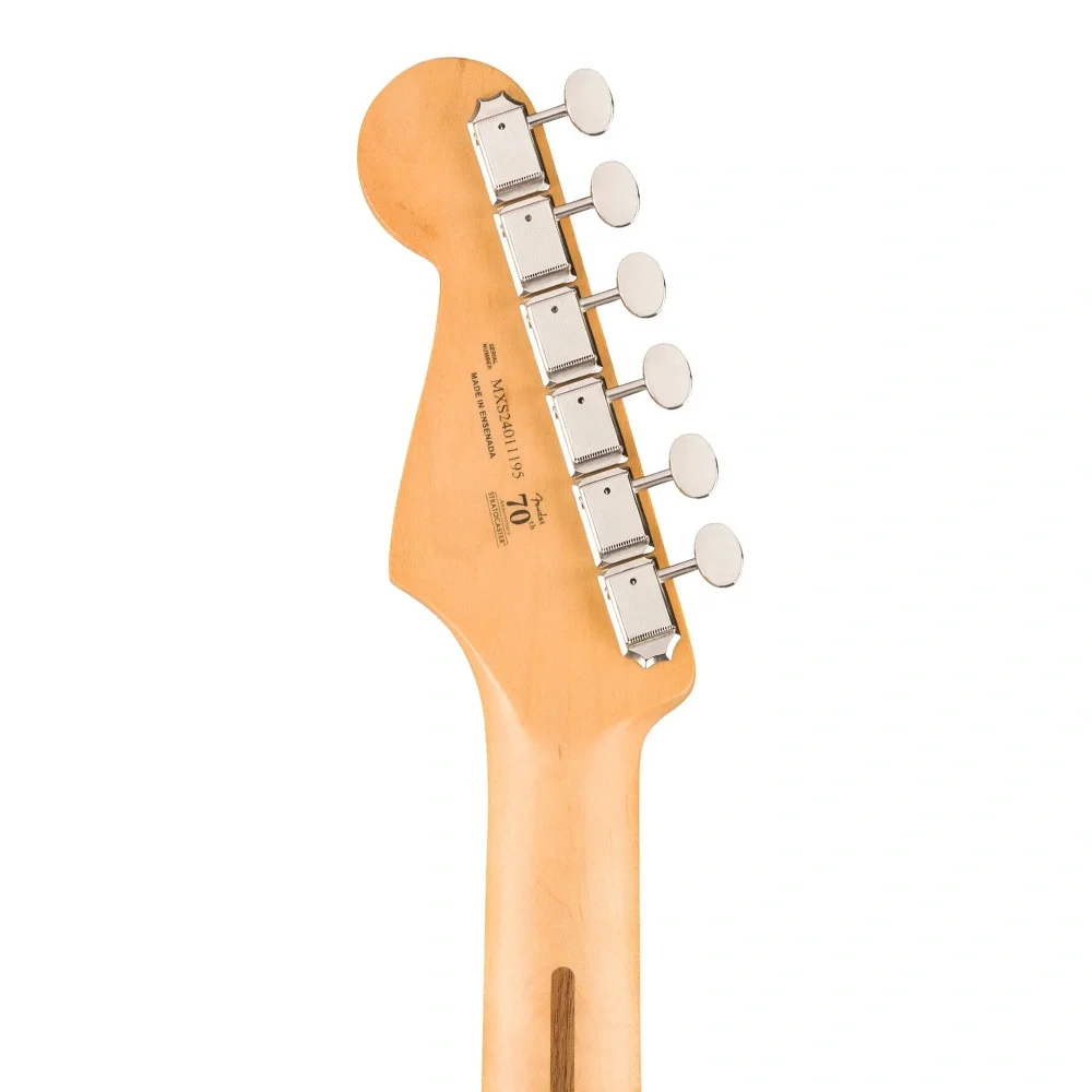 TEKNİK ÖZELLİKLER GÖVDE Gövde AğacıAlderGövde CilasıParlak PolyesterGövde ŞekliStratocasterSAP Sap AğacıAkçaağaçSap Yapısı4 Vidalı StandartSap CilasıSaten Urethane (Sap Arkası), Parlak Urethane (Başlık Yüzeyi)Sap ŞekliModern "C"Tel Boyu25.5" (64.77 cm)Tuşe AğacıSlab Rosewood (Sert Gül Ağacı)Tuşe Yarıçapı9.5" (241 mm)Perde Sayısı22Perde BoyutuOrta JumboÜst EşikSentetik KemikÜst Genişliği1.650" (42 mm)Pozisyon İşaretleriBeyaz NoktalarYan NoktalarBeyazTruss RodTek Yönlü, Sap Üstünden AyarELEKTRONİK Köprü ManyetiğiPlayer Series Alnico 5 Strat Tekli ManyetikOrta ManyetikPlayer Series Alnico 5 Strat Tekli ManyetikSap ManyetiğiPlayer Series Alnico 5 Strat Tekli ManyetikKontrollerAna Volüm, Ton 1 (Sap/Orta Manyetik), Ton 2 (Köprü Manyetik)Manyetik Seçici5 Pozisyonlu Bıçak Manyetik SeçiciManyetik KonfigürasyonuSSSDONANIM Köprü2 Noktalı Senkronize Tremolo (Çelik Saddle)KaplamaNikel/KromBurgularFender ClassicGearPickguard3 Katmanlı ParchmentKontrol DüğmeleriEskitilmiş Beyaz PlastikSwitch UcuEskitilmiş BeyazSap Plakası4 Vidalı, "F" LogoluTellerFender USA 250L Nikel Kaplama Çelik