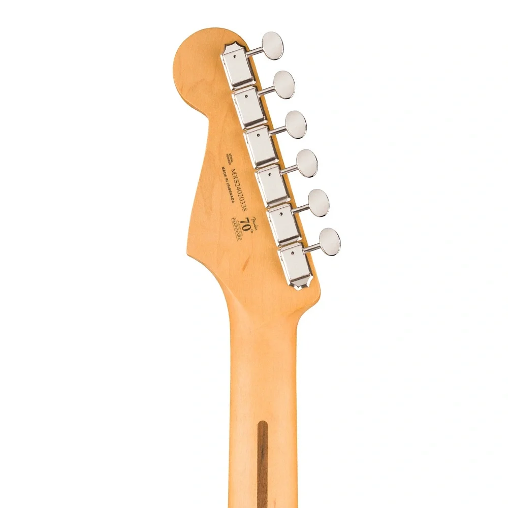 TEKNİK ÖZELLİKLER   GÖVDE   Gövde AğacıKızılağaç (Alder)Gövde CilasıParlak PolyesterGövde ŞekliStratocasterSAP   Sap AğacıAkçaağaç Sap Yapısı4 Vidalı StandartSap CilasıArka Kısım: Saten Üretan, Kafa Kısmı: Parlak ÜretanSap ŞekliModern "C"Tel Boyu25.5" (64.77 cm)Tuşe AğacıAkçaağaçTuşe Yarıçapı9.5" (241 mm)Perde Sayısı22Perde BoyutuOrta JumboÜst Eşik MalzemesiSentetik KemikÜst Eşik Genişliği1.650" (42 mm)Pozisyon İşaretleriBeyaz NoktaYan NoktalarBeyazTruss RodTek Yönlü, Kafadan AyarlıTruss Rod Somunu3/16" Alyan AyarıDONANIM VE ELEKTRONİK   Köprü ManyetiğiPlayer Serisi Alnico 2 HumbuckerOrta ManyetikPlayer Serisi Alnico 5 Strat TekliSap ManyetiğiPlayer Serisi Alnico 5 Strat TekliKontrollerAna Ses Seviyesi, Ton 1. (Sap/Orta Manyetikler),Ton 2. (Köprü Manyetiği)Manyetik Seçici5 Pozisyonlu Bıçak (Pozisyon 1: Köprü Manyetiği, Pozisyon 2: Köprü ve Orta Manyetik, Pozisyon 3: Orta Manyetik, Pozisyon 4: Orta ve Sap Manyetik, Pozisyon 5: Sap Manyetiği)Manyetik KonfigürasyonuHSSKöprü2 Noktalı Senkronize Tremolo, Bükülmüş Çelik EşikDonanım KaplamasıNikel/KromBurgularFender ClassicGearPickguard3 Katmanlı ParchmentKontrol DüğmeleriYaşlandırılmış Beyaz PlastikAnahtar UcuYaşlandırılmış BeyazSap Plakası4 Vidalı, "F" LogoluTellerFender USA 250L Nikel Kaplama Çelik (.009-.042)