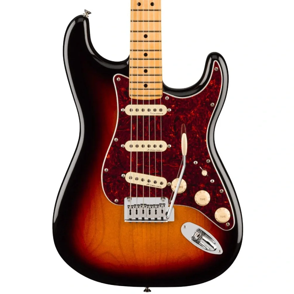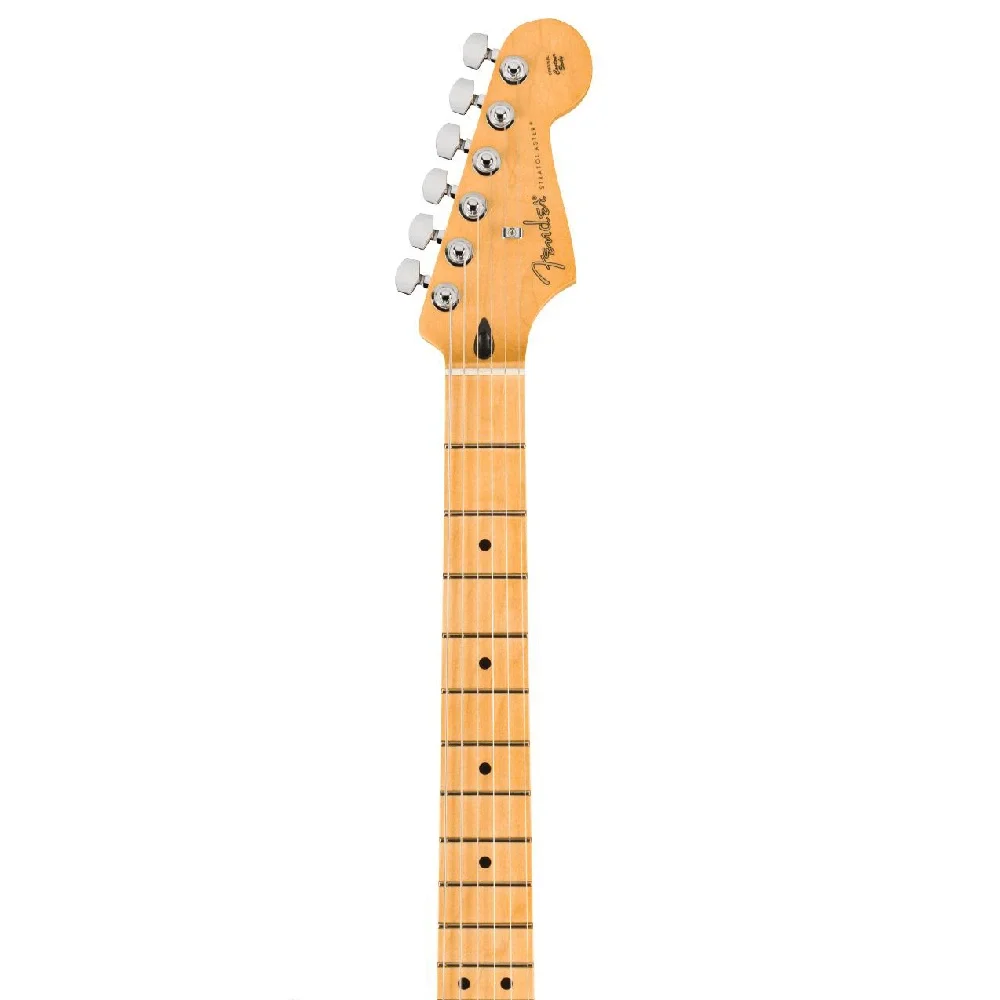 Özellik Açıklama Sap Malzemesi Akçaağaç (Maple) Sap Bitişi Satine Poliüretan Sap Şekli Modern "C" Sap Birleşimi 4 Cıvatalı Standart Klavye Yarıçapı 9.5" Klavye Malzemesi Akçaağaç (Maple) Pozisyon İşaretleri Siyah Nokta Yan İşaretler Siyah Perde Sayısı 22 Truss Rod Tek Yönlü, Sap Ucundan Ayarlanabilir Üst Eşik TUSQ Üst Eşik Genişliği 1.650" Gövde Malzemesi Kızılağaç (Alder) Gövde Bitişi Parlak Polyester Gövde Şekli Stratocaster Köprü 2 Noktalı Senkronize Tremolo, Blok Eşikler ve Kavisli Tremolo Bloğu Pickguard 4 Katmanlı Kaplumbağa Kabuğu Desenli Aksam Rengi Nikel/Krom Burgular Standart Döküm/Kapalı Tip Tel Yönlendiriciler Modern Çift Kanatlı Takılı Teller Fender USA 250L Nikel Kaplamalı Çelik (.009-.042) Sap Plakası 4 Cıvatalı, "F" Logolu Kayış Pimi Vintage Stil Köprü Manyetiği Player II Noiseless Strat Orta Manyetik Player II Noiseless Strat Sap Manyetiği Player II Noiseless Strat Manyetik Dizilimi SSS Kontroller 5 Konumlu Anahtar: 1. Köprü, 2. Köprü + Orta, 3. Orta, 4. Orta + Sap, 5. Sap Ek Anahtar Tone 2 potunda Push/Pull ile 1 ve 2. konumlara sap manyetiği eklenebilir Gigbag Dahil