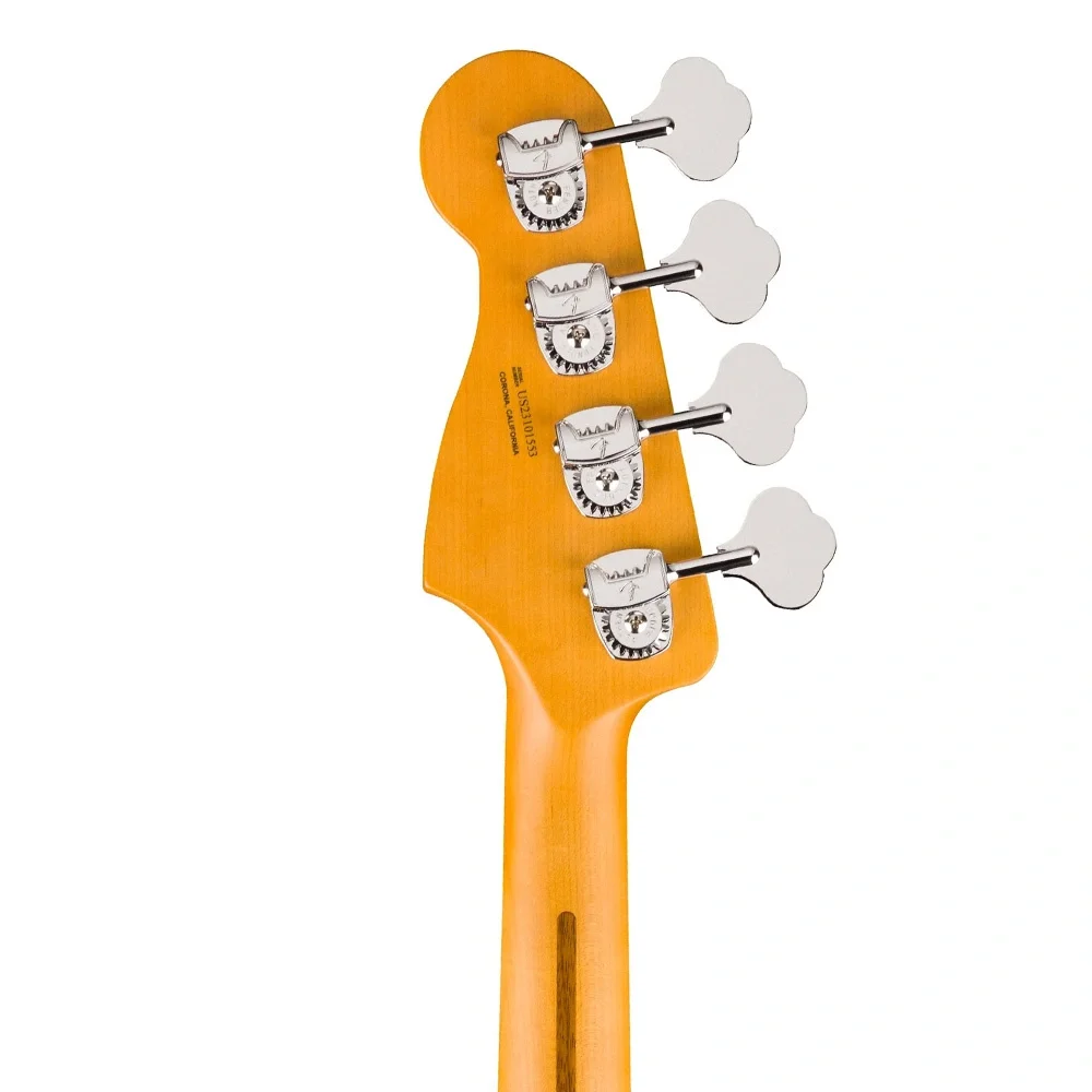 Fender® American Ultra II Precision Bass®, seçkin kızılağaç gövde ve şekillendirilmiş konturlar ile üretilmiştir. Konforlu bir çalım sunan çeyrek kesim akçaağaç sap, Modern D profili ve pürüzsüz Ultra Saten cilaya sahiptir. Çeyrek kesim akçaağaç 10”-14” bileşik yarıçaplı klavye, Ultra yuvarlatılmış kenarlar, medium-jumbo perdeler, Luminlay® yan noktalar ve Graph Tech® TUSQ® üst eşik içerir. Konik sap topuğu ve şekillendirilmiş gövde konturları, üst perdelere benzersiz erişim sağlarken, burgulara entegre truss rod erişimi, kolay ayarlama ve bakım imkanı sunar.