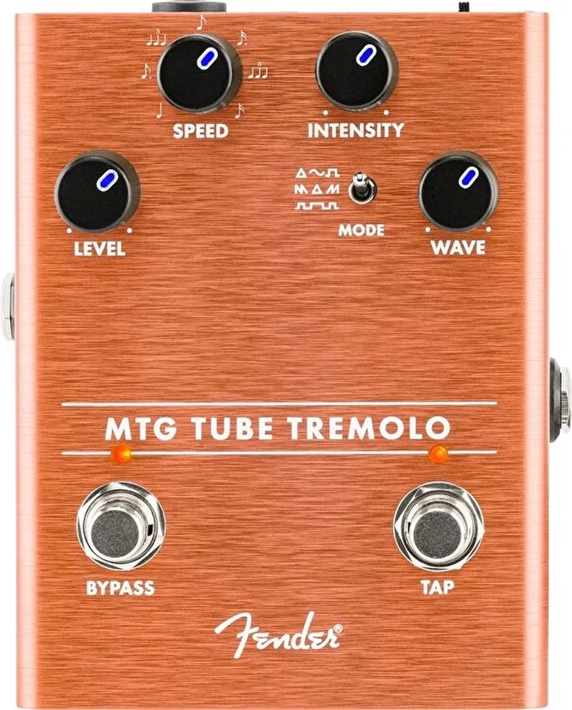 Fender adı gerçek tüp tonuyla eş anlamlıdır. MTG Tube Tremolo, klasik amfilerde tipik olarak bulunan hipnotik sesi getirir ve onu, orijinal, ABD yapımı NOS 6205 preamp tüpünü temel alan bir pedal kutusuna uygun şekilde yerleştirir. Pedalda Level, Intensity ve Hız kontrolleri, üç osilatör dalga şekli ve çeşitli nota alt bölümlerine erişim sağlayan özel bir kademe tempo ayak anahtarı bulunur.