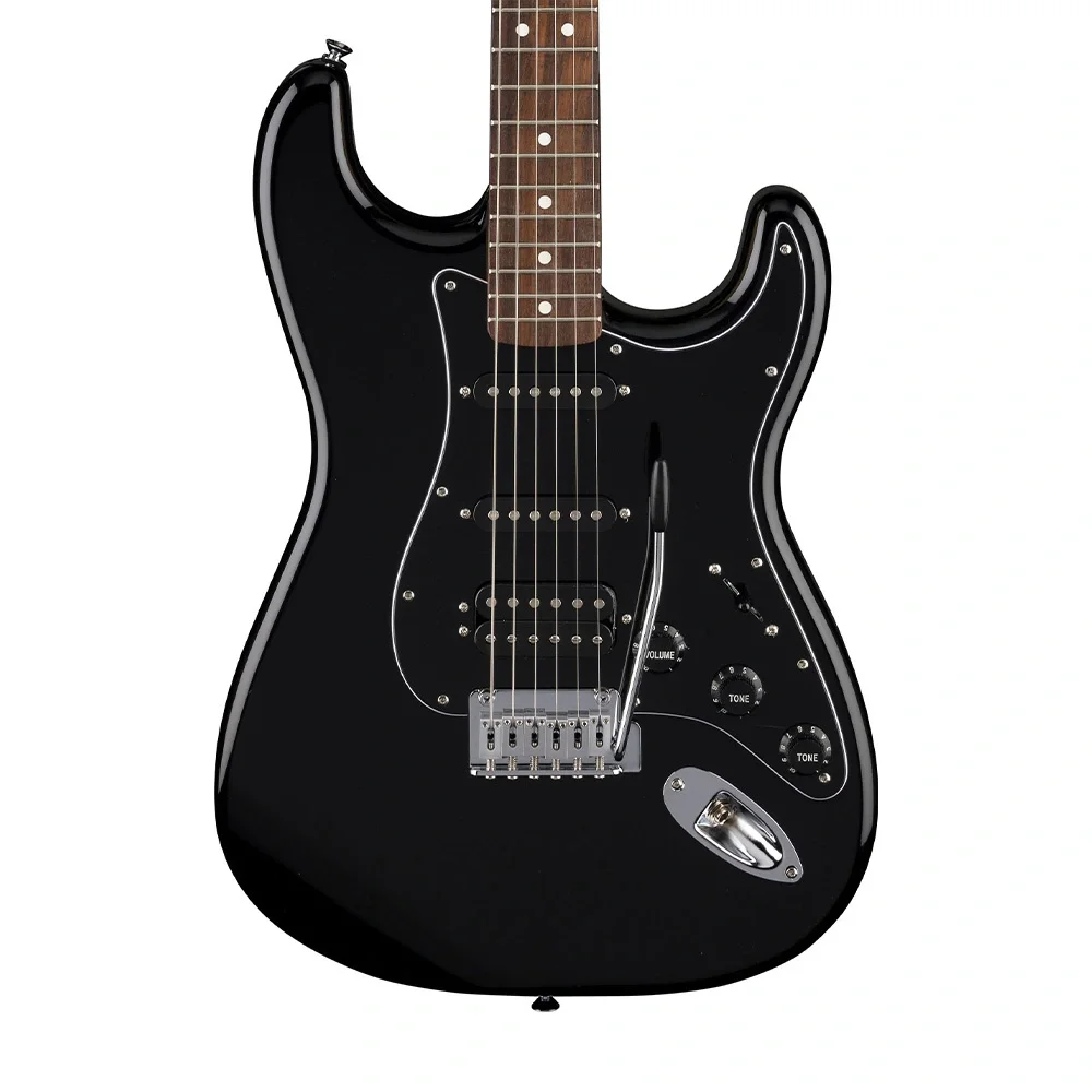 Manyetik Konfigürasyonu HSS Köprü Standart 2-Nokta Tremolo, Saten Krom Çelik Blok Eşiklerle Donanım Rengi Krom Burgular Fender Standart Döküm/Kapalı, Altıgen Düğmeli Pickguard 3 Katmanlı Beyaz Kontrol Düğmeleri Siyah Anahtar Ucu Siyah Sap Plakası 4 Vidalı Teller Nikel Kaplama Çelik (.009-.042)