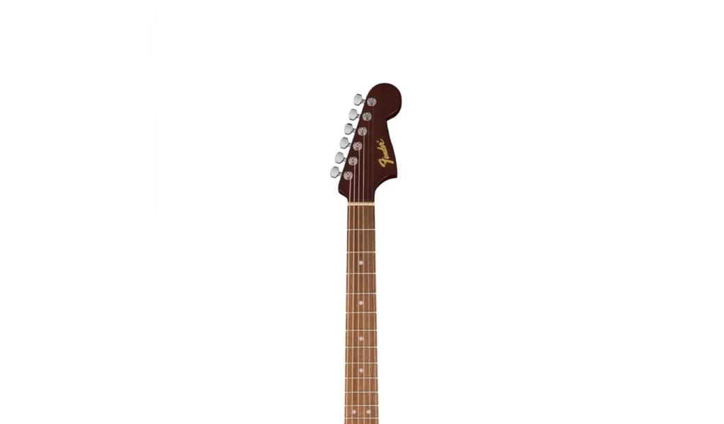 California Debut™ Redondo®, sağlam lamine yapısı sayesinde dayanıklılık ve dengeli ton sunar. Ladin üst kapak ve ıhlamur (basswood) arka/yan paneller, tatmin edici bir ses deneyimi sağlar. 25 ½” (648 mm) tel boyuna sahip, ince “C” profilli sap ise son derece konforlu ve kolay bir çalım hissi sunar.Yağlanmış ceviz tuşe ve köprü, kapalı dişli burgularla birlikte akıcı ve hassas akort imkanı sağlar. Gitarın zarif saten cilası da estetik bütünlüğünü tamamlar.Fender’e özgü ikonik 6’lı inline kafa tasarımı, tellerin eşit gerginlikte olmasını sağlayarak akort kararlılığını artırır ve burgulara kolay erişim sunar. Hafif eğimli bu kafa yapısı sayesinde tüm tellerde dengeli bir tepki ve tutarlı çalım hissi elde edilir.