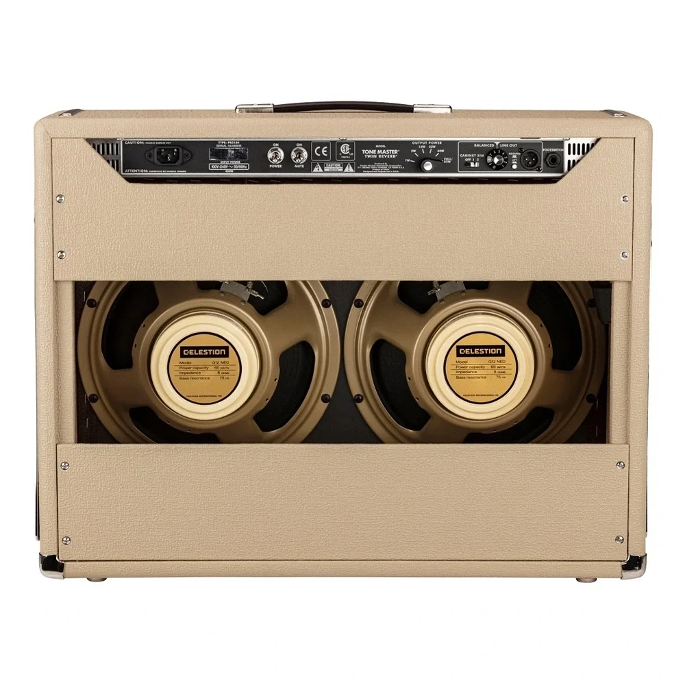 Cesur bir Fender'de ilk olarak, Tone Master Twin Reverb Blonde amplifikatör, olağanüstü tek bir ses başarısı elde etmek için muazzam dijital işlem gücü kullanır: orijinal bir Twin lambalı amfinin devre sistemini ve 85 watt'lık güç çıkışını sadakatle modelleme. Gerçek bir vintage İkiz tüplü amfinin boşluk payı ve dinamik aralığını elde etmek için yüksek performanslı 200 watt'lık bir dijital güç amplifikatörü kullanılır. Rezonanslı masif çam kabin, daha belirgin bir rock 'n' roll tadı için iki Celestion® NEO Creamback hoparlör ile eşleştirilmiştir. Sonuç, tamamen tüplü orijinalinden neredeyse ayırt edilemeyen tubeless Twin Reverb tonu, hacmi ve dinamikleridir. Reverb kontrolü, daha düşük ayarlarda daha kolay ince ayar sağlamak için değiştirildi. Belki de en önemlisi, tüm bu özellikler ve daha fazlasıyla bile, Tone Master Twin Reverb, aslında tüm tüplü Twin'in ağırlığının sadece yarısı kadardır.