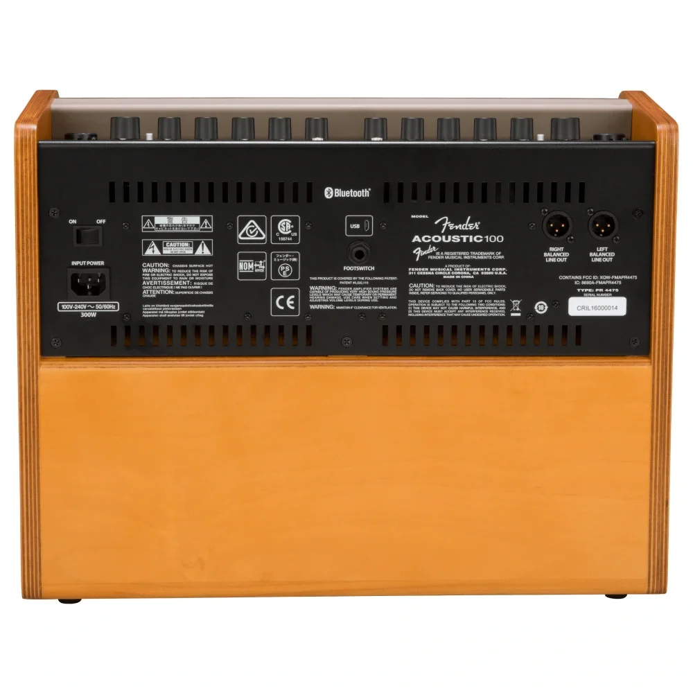Teknik ÖzelliklerAçıklamaYardımcı Giriş1/8 inç (3.5 mm) StereoKanal Sayısı2Bağlantı Tipi1/4 inçBağlantı ÖzellikleriBluetooth® ve USBKontrol PaneliKanal 1: Volume, Bass, Mid, Treble, FX Level, FX Select, Faz Anahtarı; Kanal 2: Volume, Bass, Mid, Treble, FX Level, FX Select, Faz AnahtarıKontrollerKanal 1: Volume, Bass, Mid, Treble, FX Level, FX Select, Faz Anahtarı; Kanal 2: Volume, Bass, Mid, Treble, FX Level, FX Select, Faz AnahtarıEfektlerRoom Reverb, Hall Reverb, Tape Echo, Delay with Repeats, Chorus, Vibratone, Delay + Chorus, Delay + Hall ReverbKulaklık Çıkışı1/8 inç StereoGirişler2 adet (XLR / 1/4 inç kombo)Hat Çıkışı2 adet XLR (Stereo)Voltaj Gereksinimi100–240 VAC, 50–60 HzÇıkış Gücü100 WattAmfi TipiTransistörlü (Solid State)RenkDoğal Sarı (Natural Blonde)Ürün AdıAcoustic 100, 120VSeriAcoustic SeriesAmfi KaplamasıLaklı KontrplakKabin MalzemesiLaklı KontrplakKontrol DüğmeleriSiyah PlastikIzgara KumaşıKahverengiTutma KoluEntegre Üstten Taşıma SapıArka Kontrol PaneliGüç DüğmesiDerinlik9.25 inç (23.5 cm)Yükseklik14 inç (35.5 cm)Genişlik18.5 inç (47.0 cm)Hoparlör1 adet 8 inç Full-Range Whizzer ConeToplam Empedans8 ohm