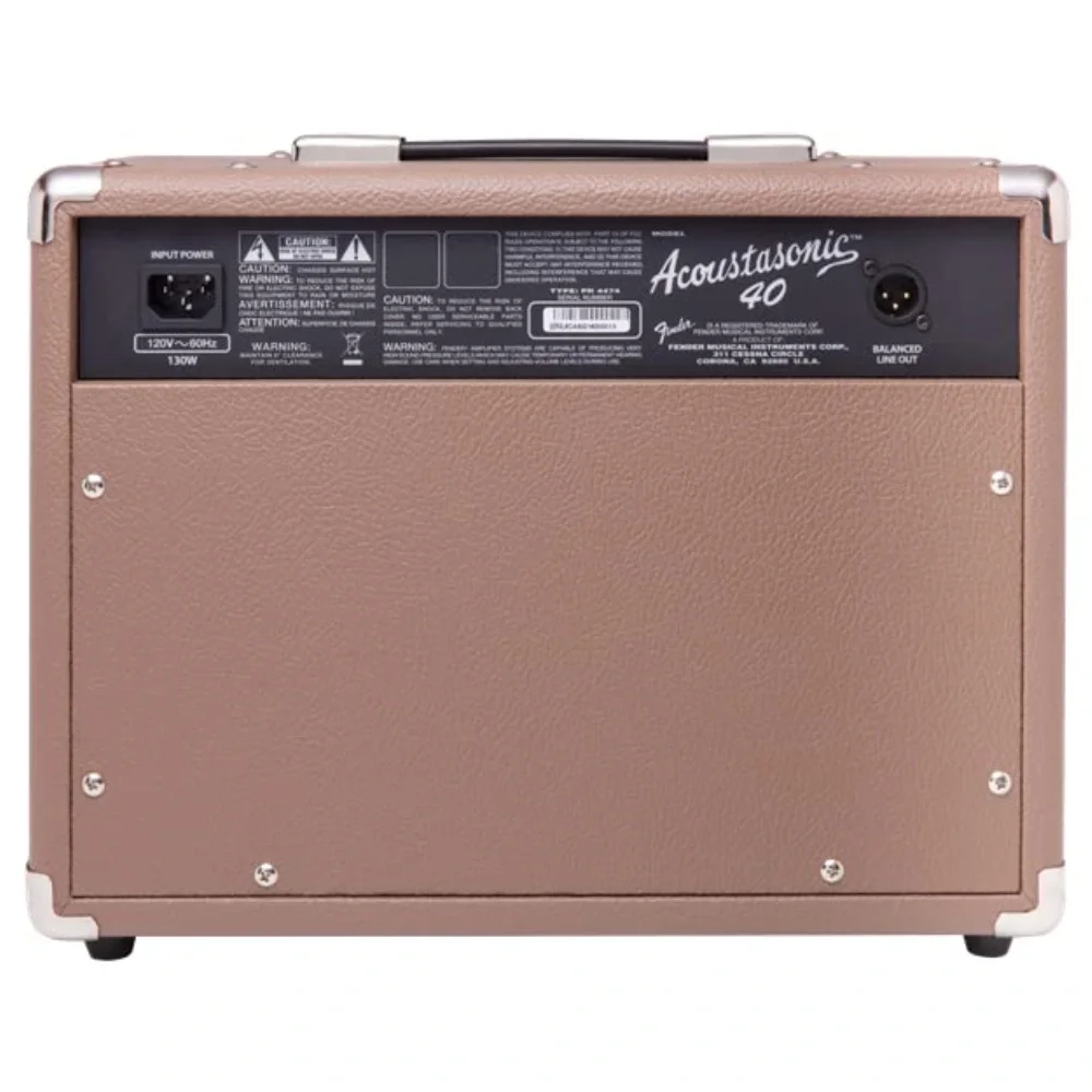 Transistörlü (solid state) yapısıyla uzun ömürlü ve bakım gerektirmeyen bir amfi olan Acoustasonic 40, 100-240V AC aralığında çalışabilir ve 8 ohm empedansa sahiptir. Donanım özellikleri açısından da oldukça sağlam ve estetik bir tasarıma sahiptir: kahverengi dokulu vinil kaplama, 5 katmanlı ve 5/8 inç kalınlığında hafif kontrplak kabin, beyaz çizgili kahverengi kontrol düğmeleri, siyah ızgara kumaşı ve nikel kaplı uçlara sahip plastik taşıma kolu ile hem şık hem de dayanıklıdır.