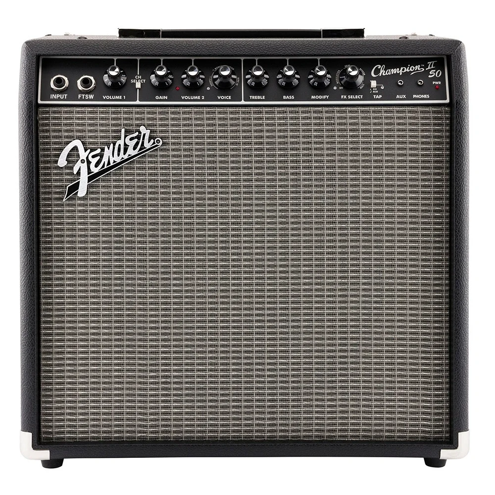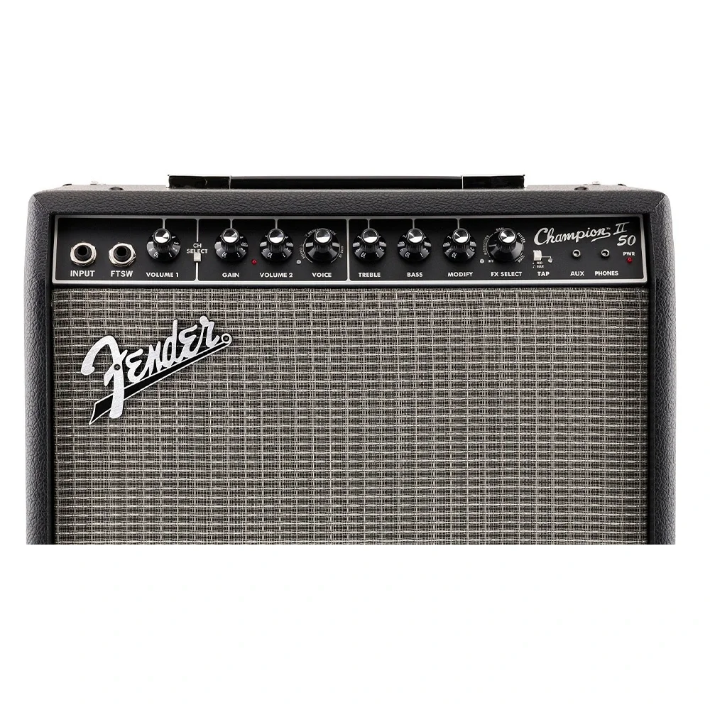 Champion II, dünya çapında tanınan Fender'in clean ve overdrive tonlarını, ayrıca Britanya tarzı ve modern distortion seçeneklerini sunar. Jazz'dan country'e, blues'dan metale kadar her tarz için kolayca mükemmel sesi ayarlayabilirsiniz. Dahili efekt seçenekleri arasında reverb, delay/echo, chorus, tremolo, vibratone ve daha fazlası bulunur. Delay süreleri ve tremolo hızları TAP düğmesiyle şarkının temposuna uygun şekilde kolayca ayarlanabilir.