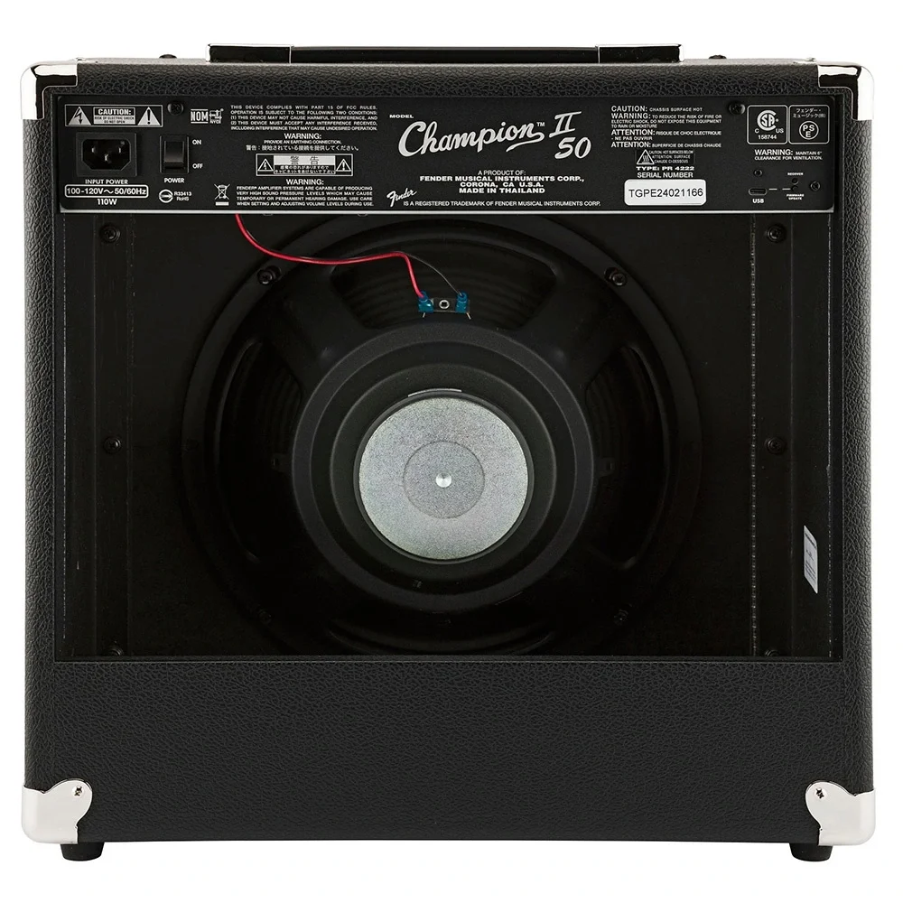 TEKNİK ÖZELLİKLER KontrollerKanal 1: Volüm; Kanal 2: Kazanç, Volüm, Ses; Master: Tiz, Bas, FX Seviyesi, FX Seçimi, TAPKanallarİkiGirişlerBir - 1/4”Voltaj230V EURVoltaj Gereksinimleri100-240 VAC, 50-60 HzWatt50 WattKulaklık Girişi1/4”Kabin Malzemesi7 Katlı 3/4” Orta Yoğunlukta Lif LevhaAmplifikatör KaplamasıSiyah Dokulu VinilIzgara BeziGümüşÖn PanelSiyahTutamakNikel Kaplama Kapaklı Kalıplı Plastik KayışRenkSiyahHoparlörlerBir - 12” Fender® Özel TasarımToplam Empedans8 ohmFootswitch2 Düğmeli (Kanal Seçme, Efekt Açma/Kapama), P/N: 0057664000 (Dahil Değildir)Ölçüler ve Ağırlık Yükseklik17,25” (43,8 cm)Genişlik17,25” (43,8 cm)Derinlik9” (22,9 cm)Ağırlık19 lbs. (8,6 kg)