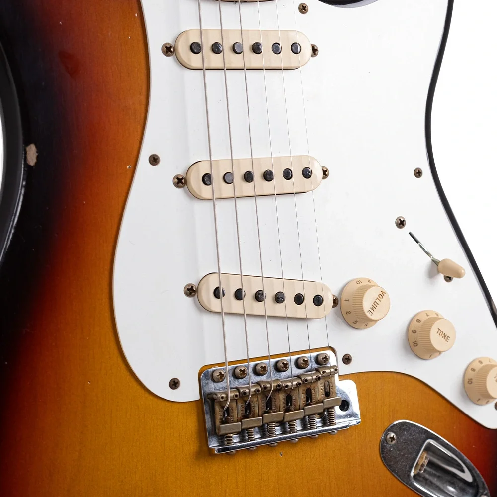 Fender Custom Shop 1958 Stratocaster Relic, gitar tarihinin en ikonik tasarımlarından biri olan Stratocaster’ın ruhunu ve eşsiz tonlarını yeniden hayata döndürüyor. Bu özel model, Fender’in klasik mühendisliğine sadık kalınarak üretildi ve ustalıkla işlenmiş detaylarla zenginleştirildi. El seçimi iki parçalı kızılağaç gövde, çeyrek kesim tek parça akçaağaç sap ve klavye ile tamamlanarak, 1954 dönemine özgü yumuşak "V" profil sunar. El yapımı Fat '50s tekli manyetikler, eşsiz bir ton yelpazesi sunarken vintage senkronize tremolo ve klasik akort burguları bu modeli gerçek bir Stratocaster efsanesine dönüştürür.