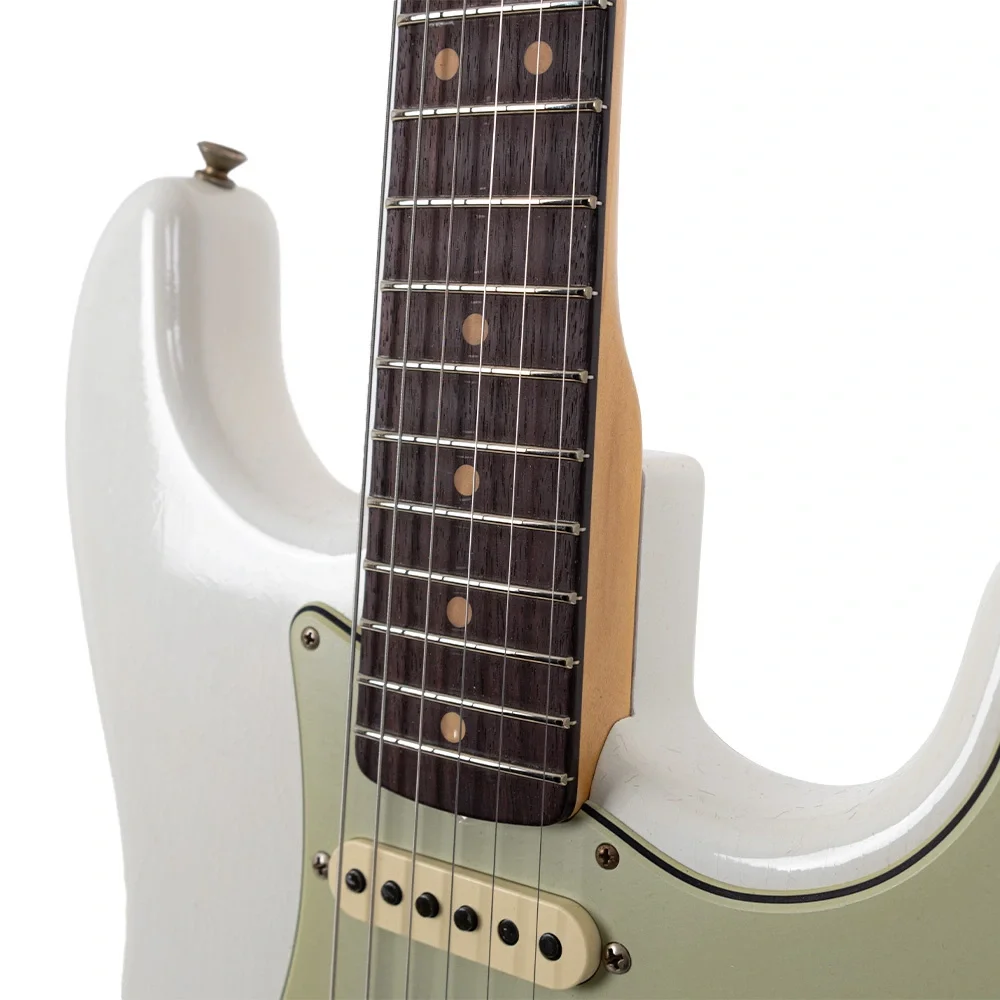 Custom Shop, akçaağaç sapın çeyrek kesim versiyonunu tercih ederek hem fiziksel hem de tonal olarak daha dayanıklı bir yapı oluşturdu. Yuvarlak laminasyonlu gülağacı klavye, 9.5 inç yarıçap ve 21 dar-yüksek perde ile donatılmıştır. 1963 tarzı yumuşak "C" profil ise çeşitli çalma stillerine uyum sağlayan rahat bir tutuş sunar. Vintage tarzı akort burguları, kemik üst eşik ve klasik tel ağacı detayları, bu gitara hem estetik hem de performans açısından vintage bir karakter kazandırır. Custom Shop senkronize tremolo, geniş bir ifade yelpazesi sağlar.