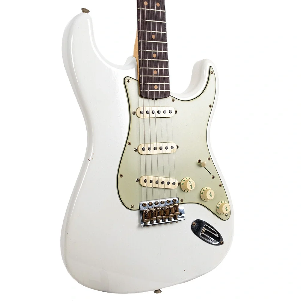 El ile sarılmış Fat '64 Manyetikler: Geniş dinamik aralık ve vintage tonlar sunar.İki Parçalı Kızılağaç Gövde: Sıcak tonlar, güçlü orta frekanslar ve sıkı baslar sağlar.Çeyrek Kesim Akçaağaç Sap: Hafif, dayanıklı ve iklim değişikliklerine uyumlu.Yuvarlak Laminasyonlu Gülağacı Klavye: Parlak ve güçlü tonlar sunar.1963 Tarzı Yumuşak "C" Sap Profili: Çeşitli çalma stillerine uyum sağlar.21 Dar-Yüksek Perde: 9.5 inç yarıçaplı klavyede geniş tonal yelpaze.Tone-Saver Devresi: Düşük volümde bile tutarlı tonlar.Vintage Tarzı Donanım: Stabil ve güvenilir bir performans.Custom Shop Senkronize Tremolo: Geniş dive-bomb sağlar.Deluxe Hardshell Kasa ve Sertifika: Özel aksesuarlarla birlikte gelir.GÖVDE			 							Gövde Ağacı2 Parça Seçilmiş KızılağaçGövde CilasıNitroselüloz LakeGövde ŞekliStratocaster®SAP			 							Sap AğacıÇeyrek Kesimli AkçaağaçSap CilasıNitroselüloz LakeSap Şekli1963 Strat Style “C”Tel Boyu25.5" (648 mm)Tuşe AğacıAAA GülağacıTuşe Yarıçapı9.5″ (241 mm)Perde Sayısı21Perde Boyutu6105 Narrow TallÜst EşikKemikÜst Genişliği 1.650″ (42 mm)Sap İşlemesiClay NoktalarELEKTRONİK			 							Köprü ManyetiğiCustom Shop El Sarımlı Fat ’64 Tekli Strat® ManyetikOrta ManyetikCustom Shop El Sarımlı RWRP (Ters Polarite) Fat ’64 Tekli Strat® ManyetikSap ManyetiğiCustom Shop El Sarımlı Fat ’64 tekli Strat® ManyetikKontrollerAna Volüm, Ton 1. (Sap Manyetiği ve Orta Manyetik), Ton 2. (Ana Ton)Manyetik Seçici5 Konumlu: